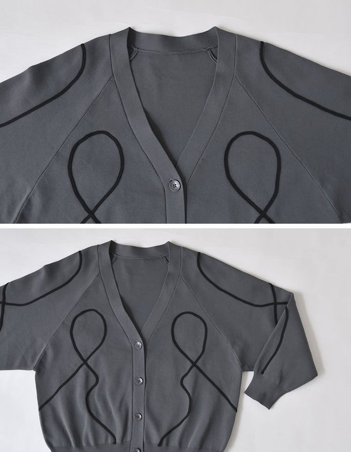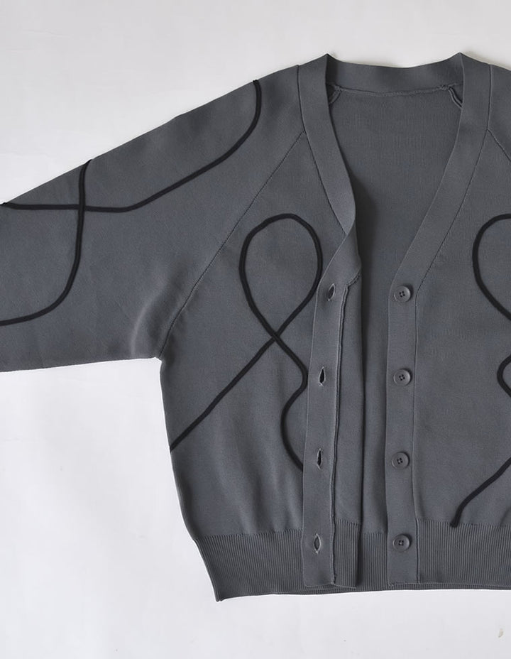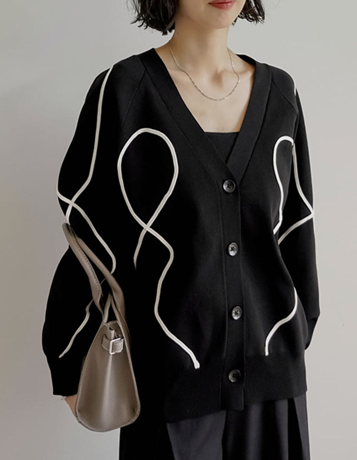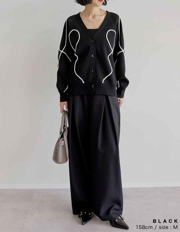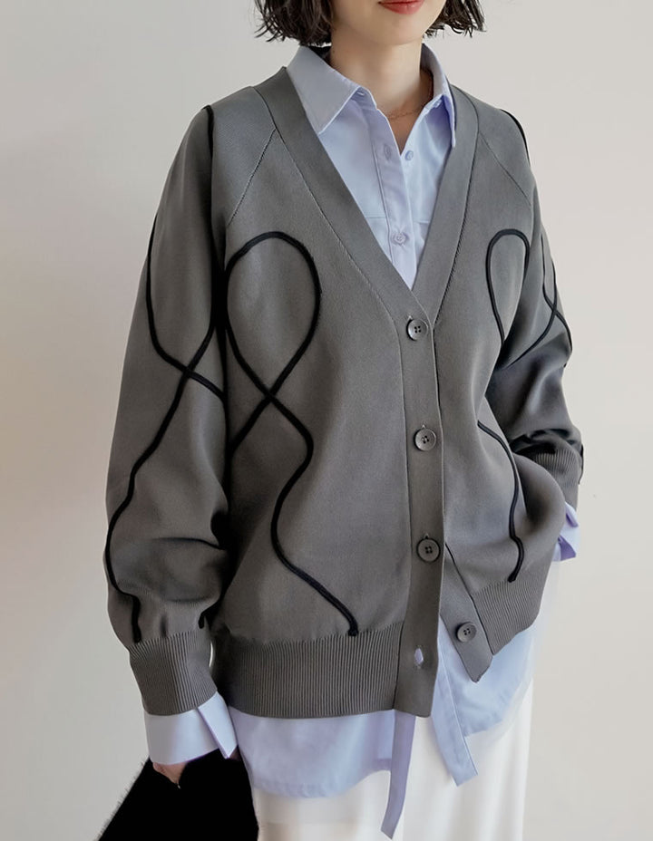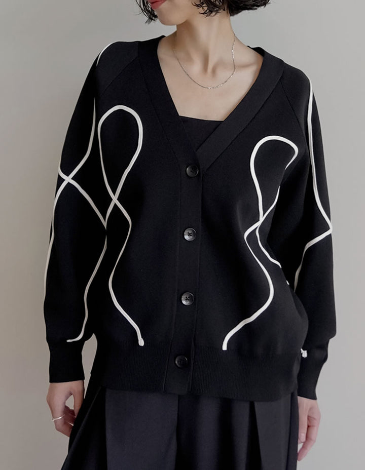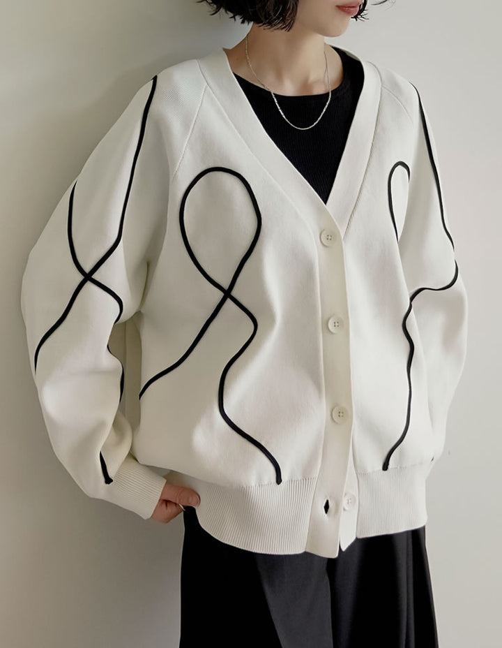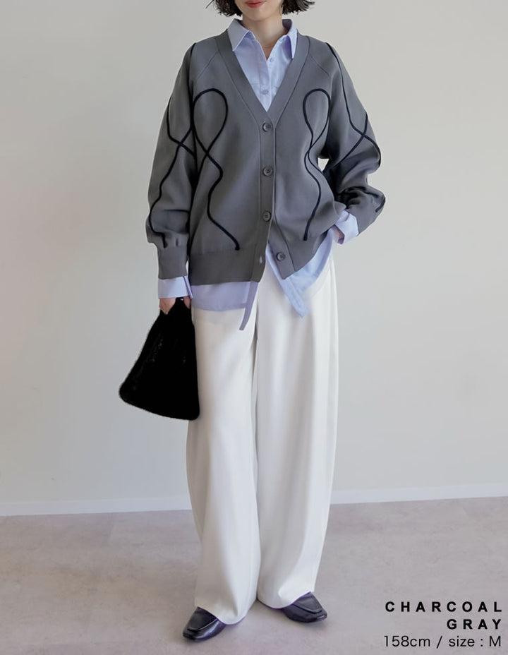 ▼デザイントレンド感のあるテープ刺繍をフロントに施し、立体的なラインワークでアートな表情をプラスしたニットカーディガン。ゆったりとしたフォルムながら、女性らしいシルエットにこだわった一着です。程よくハリのあるスポンジニット素材が、カジュアルに傾きすぎず、品のあるモードな雰囲気を演出。落ち着いた配色と絶妙なテープラインが、シンプルなスタイリングにさりげなく映えます。ラグラン仕様で肩まわりに抜け感をつくり、羽織るだけで旬なシルエットが完成。季節の変わり目には一枚で、秋冬はジャケットのインナーとしても活躍する、ロングシーズン頼れるアイテムです。