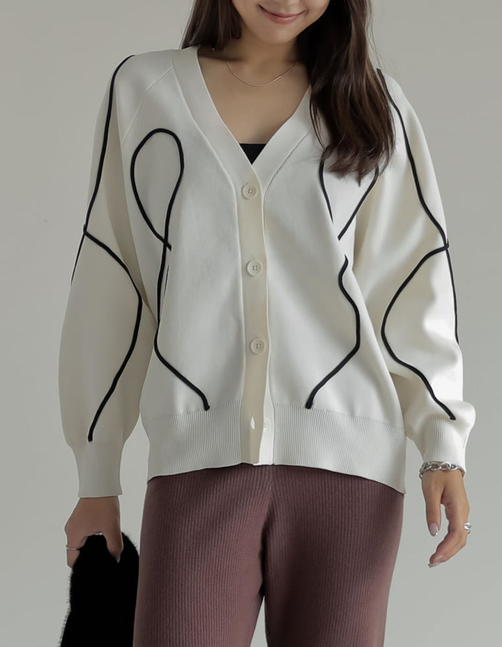 スポンジニットテープデザインドルマンニットカーディガン(商品番号:139678)