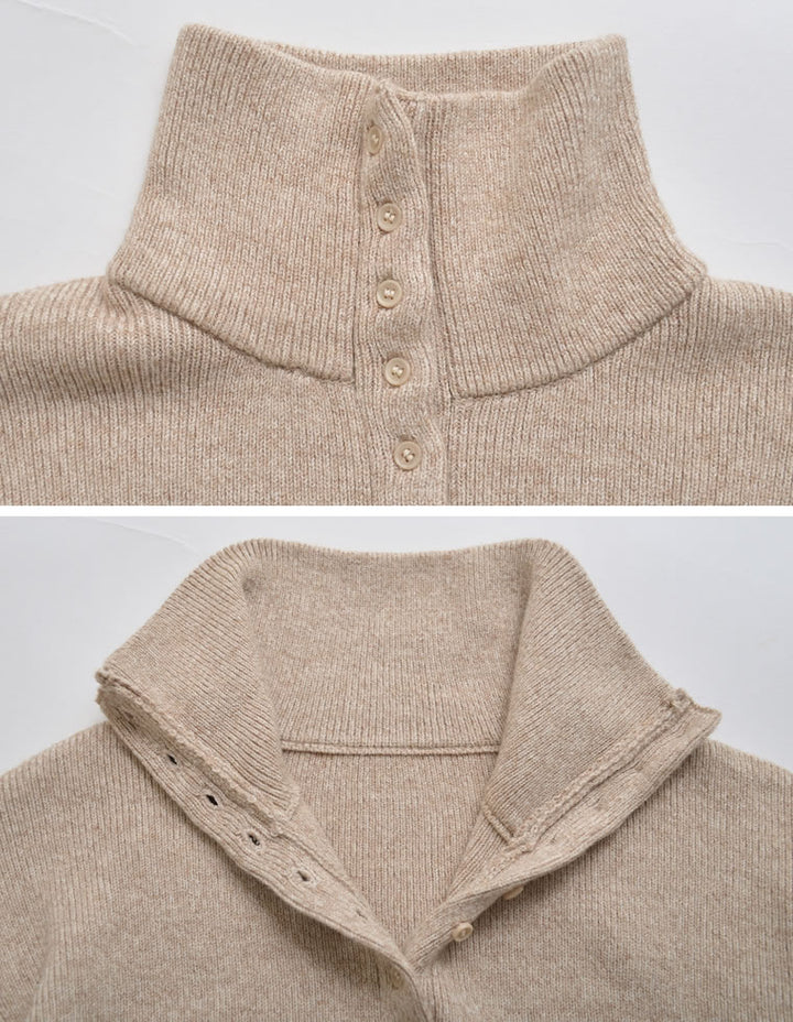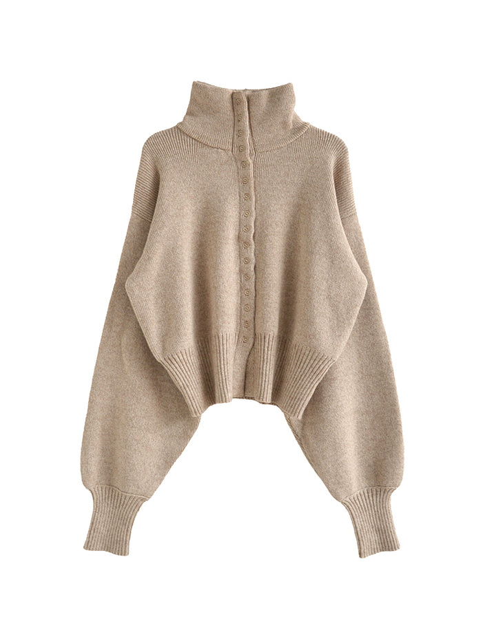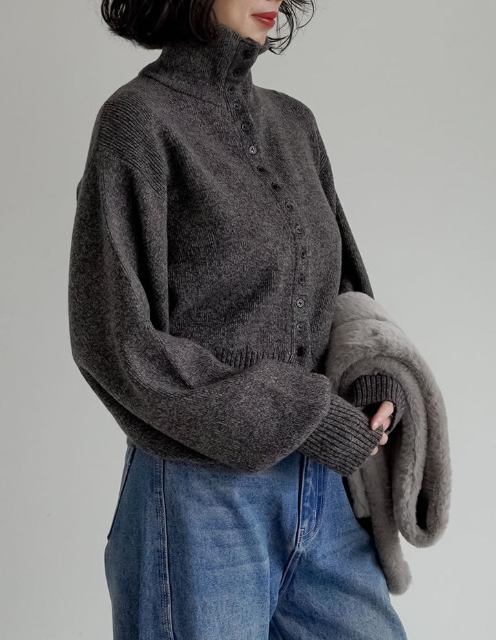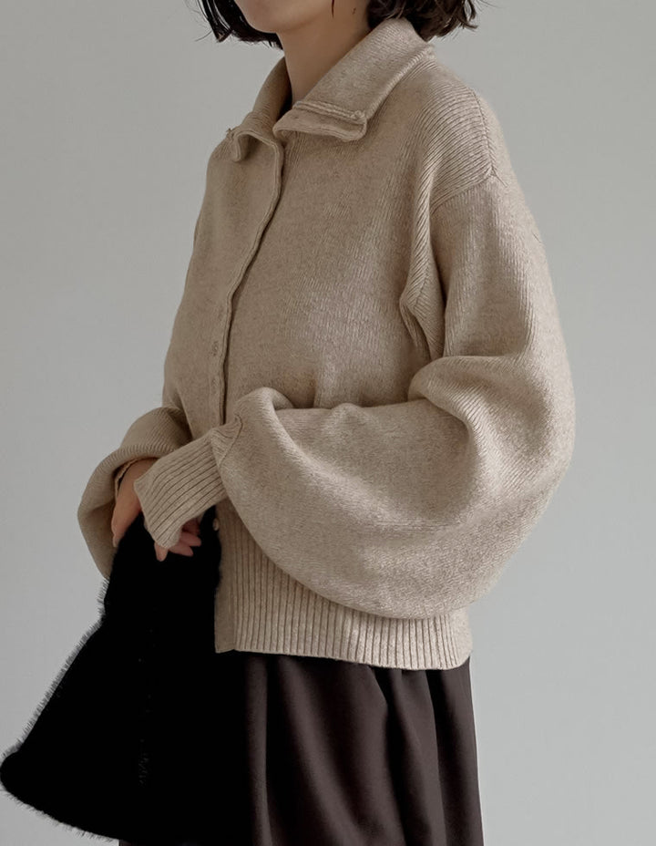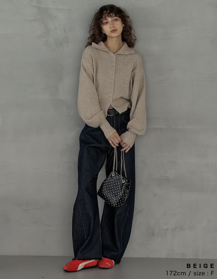 カーディガンとしてはもちろん、ボタンを留めて一枚着のハイネックニットとしても活躍。ワイドパンツやストレートスラックスと合わせれば、シンプルながらモード感漂う大人のカジュアルスタイルが完成します。