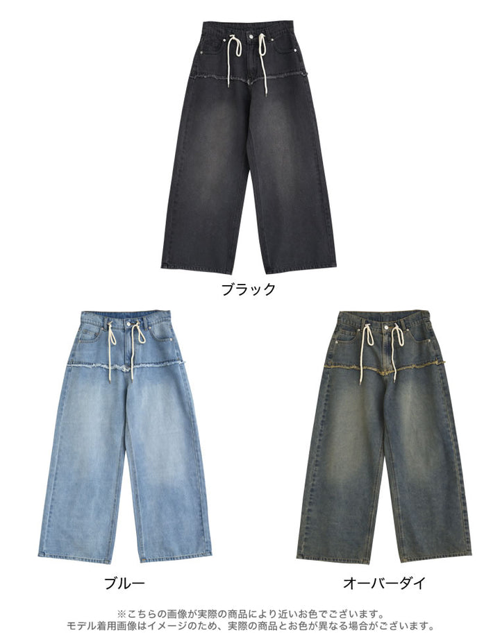 [低身長/高身長サイズ有]コットンデニムロープベルト付きワイドバレルレッグカーブパンツ