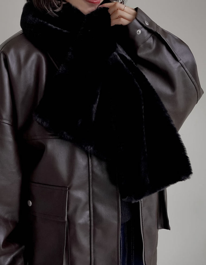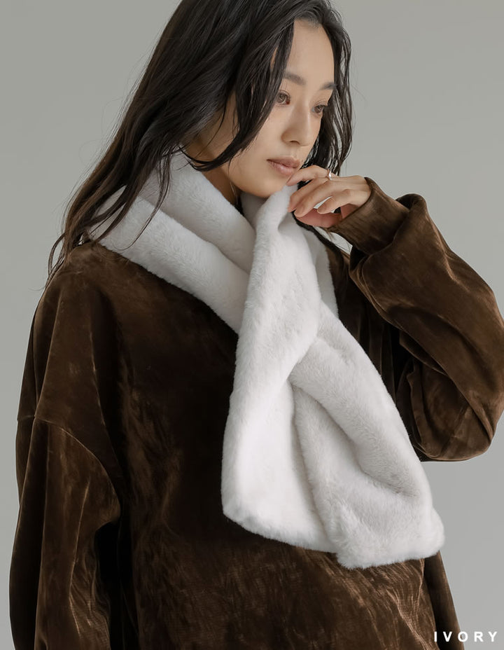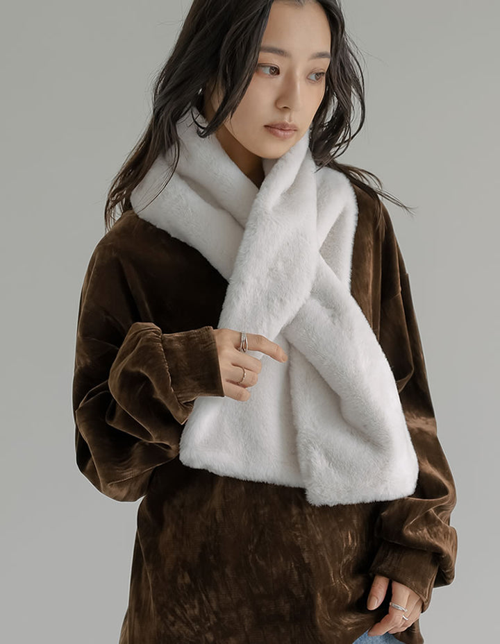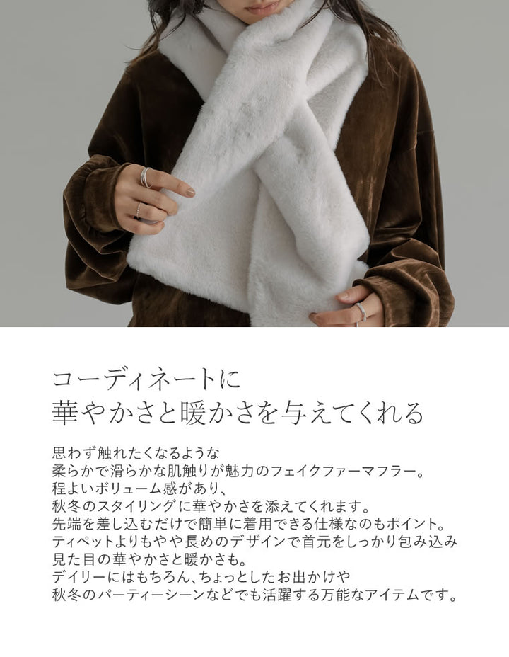 思わず触れたくなるような、柔らかで滑らかな肌触りが魅力のフェイクファーマフラー。程よいボリューム感があり、秋冬のスタイリングに華やかさを添えてくれます。先端を差し込むだけで簡単に着用できる仕様なのもポイント。ティペットよりもやや長めのデザインで首元をしっかり包み込み、見た目の華やかさと暖かさも。デイリーにはもちろん、ちょっとしたお出かけや秋冬のパーティーシーンなどでも活躍する万能なアイテムです。