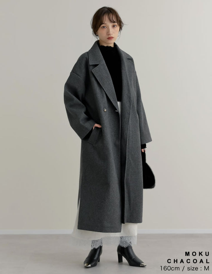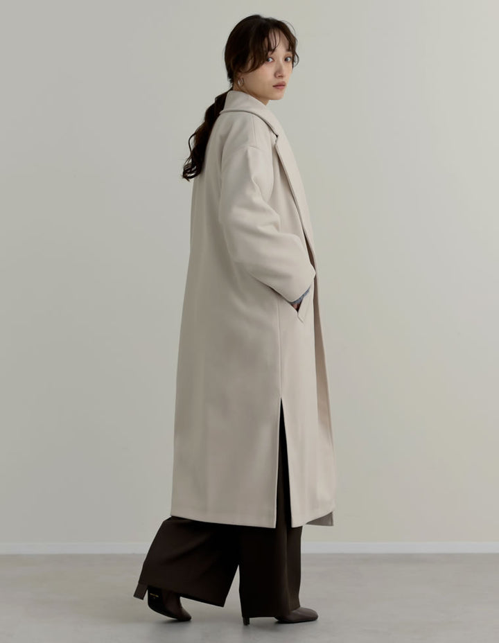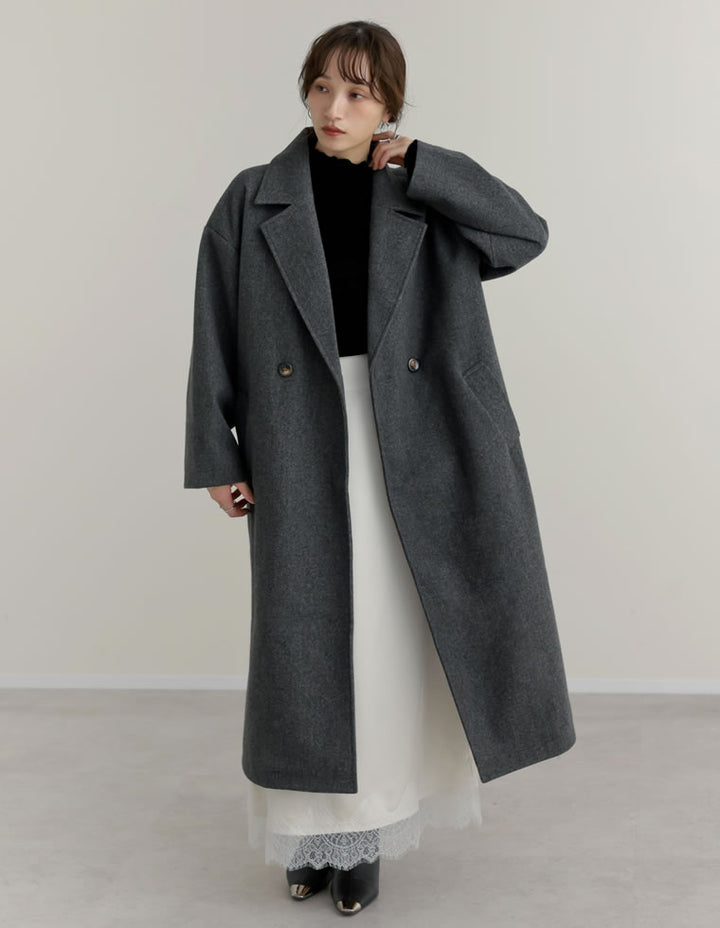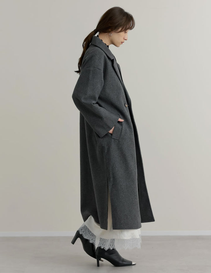 体をすっぽりと包み込む絶妙なオーバーサイズのシルエットが、きれいめかつモードな印象を与えます。