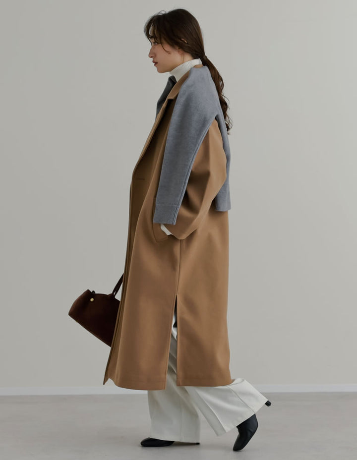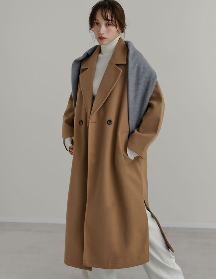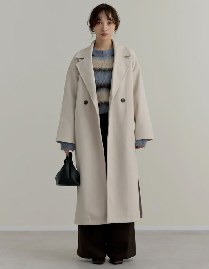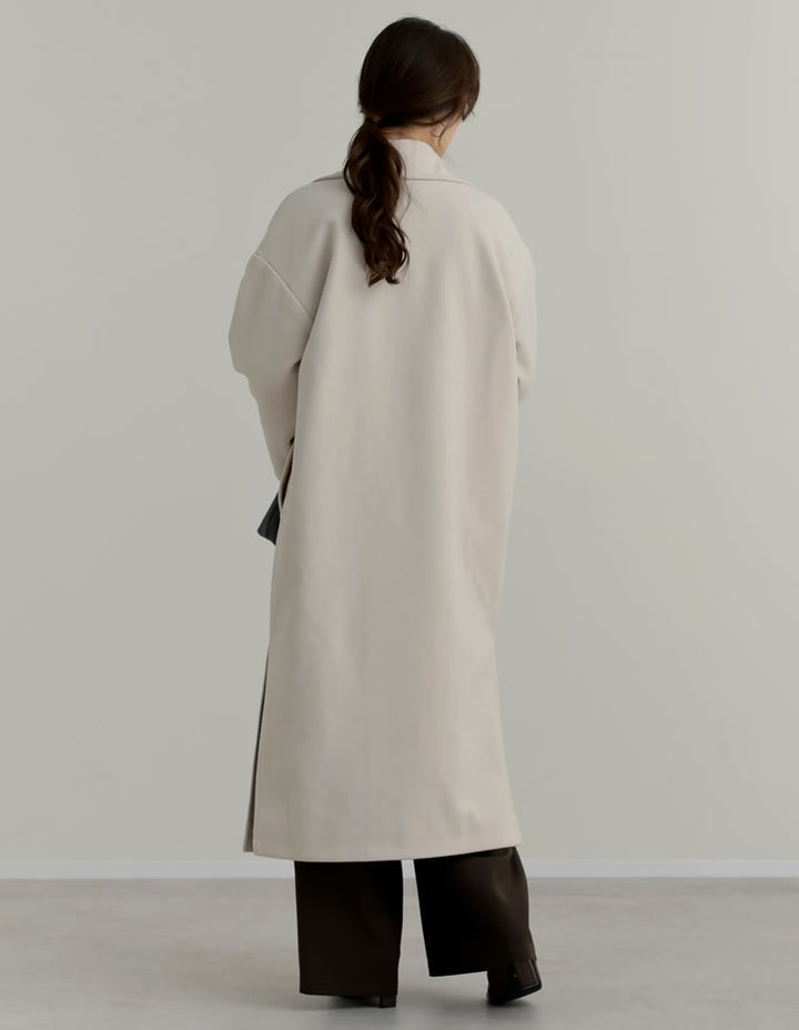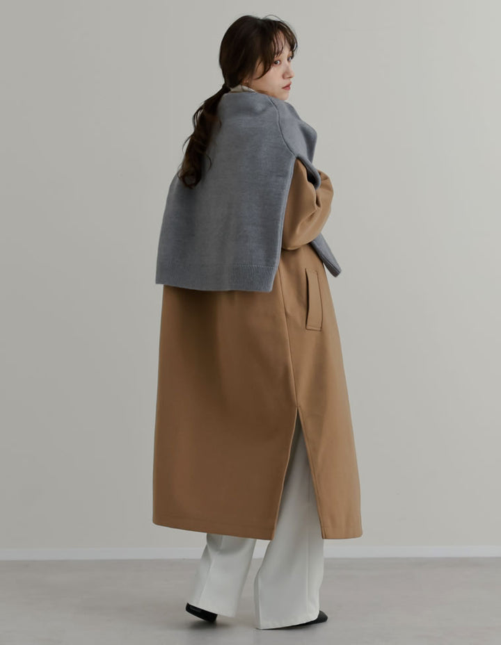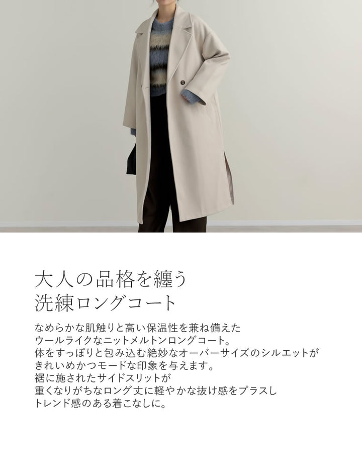 なめらかな肌触りと高い保温性を兼ね備えた、ウールライクなニットメルトンロングコート。