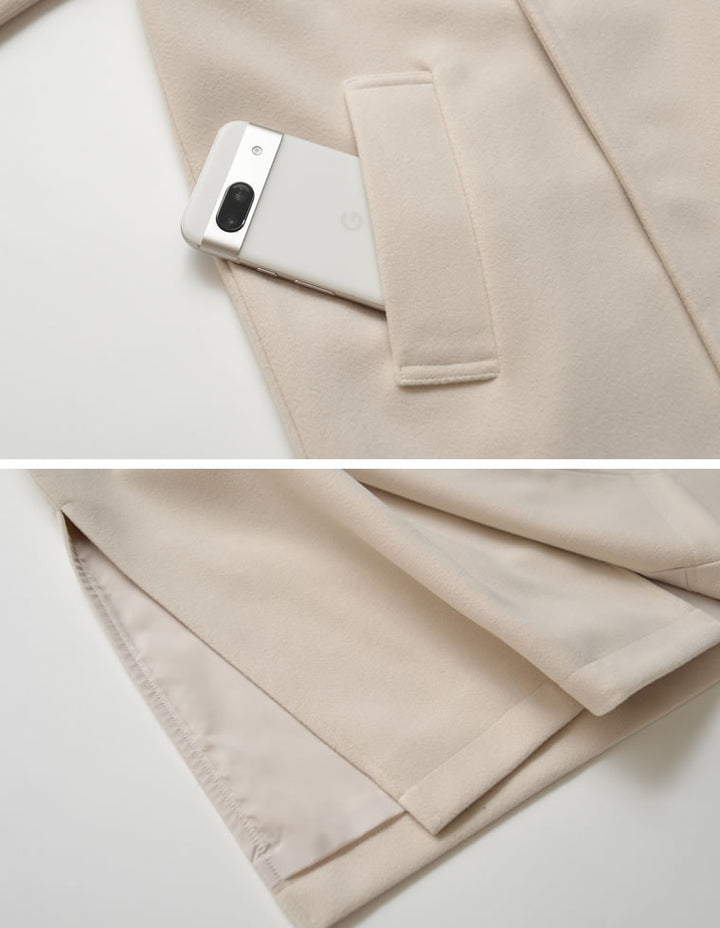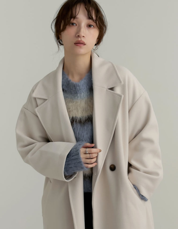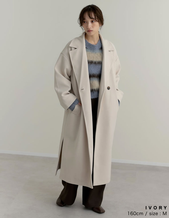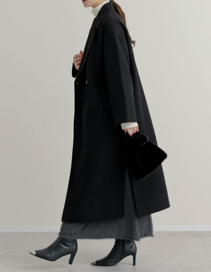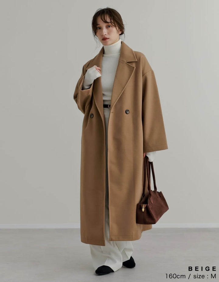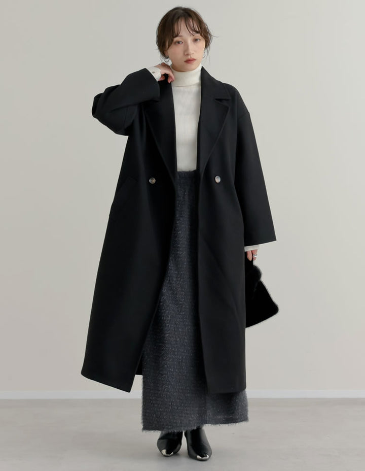 なめらかな肌触りと高い保温性を兼ね備えた、ウールライクなニットメルトンロングコート。