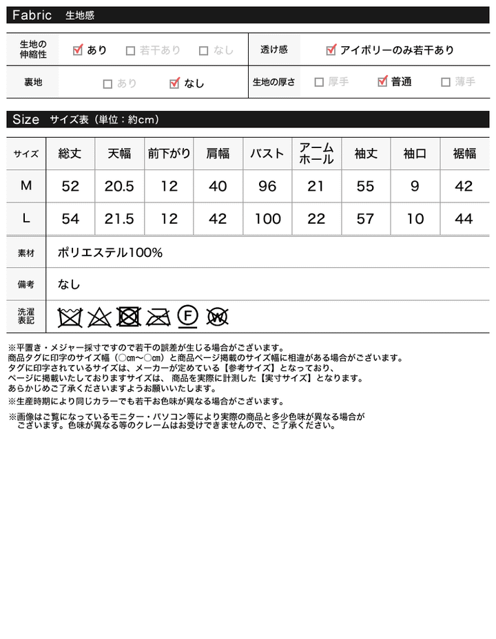 洗濯・アイロンをする際は、商品タグの品質表示をご確認ください。