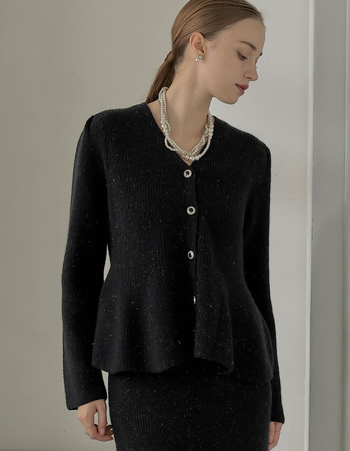 【MEISM LOOK BOOK 20%OFF対象】[MEISM by Re:EDIT][2025AW COLLECTION]畦編みペプラムラメニットカーディガン