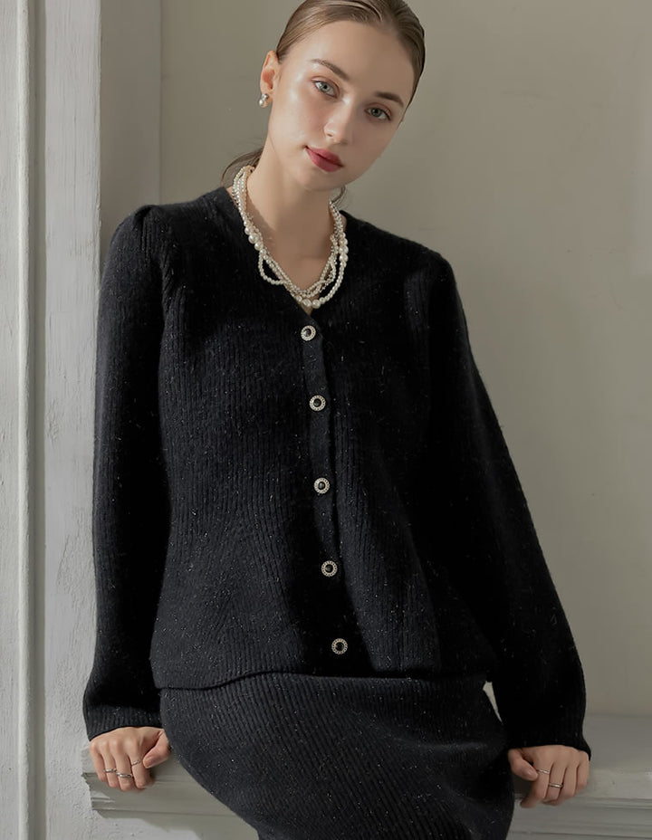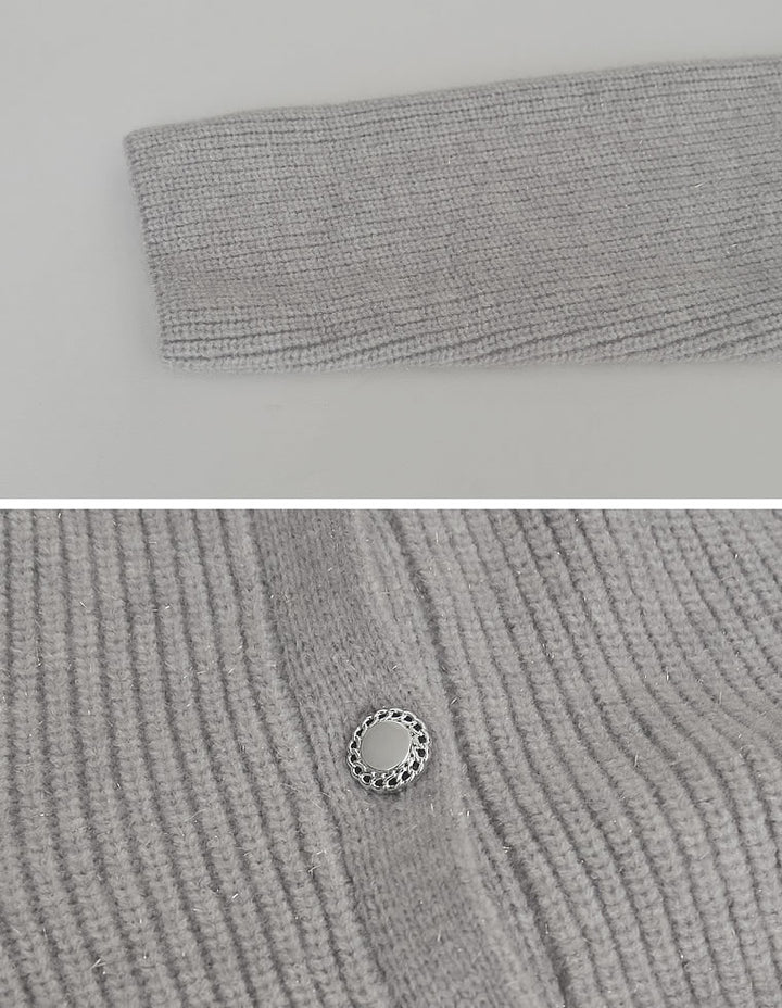 繊細なラメ糸を織り込んだ畦編みニット