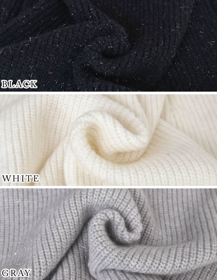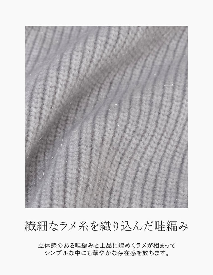 繊細なラメ糸を織り込んだ畦編みニット