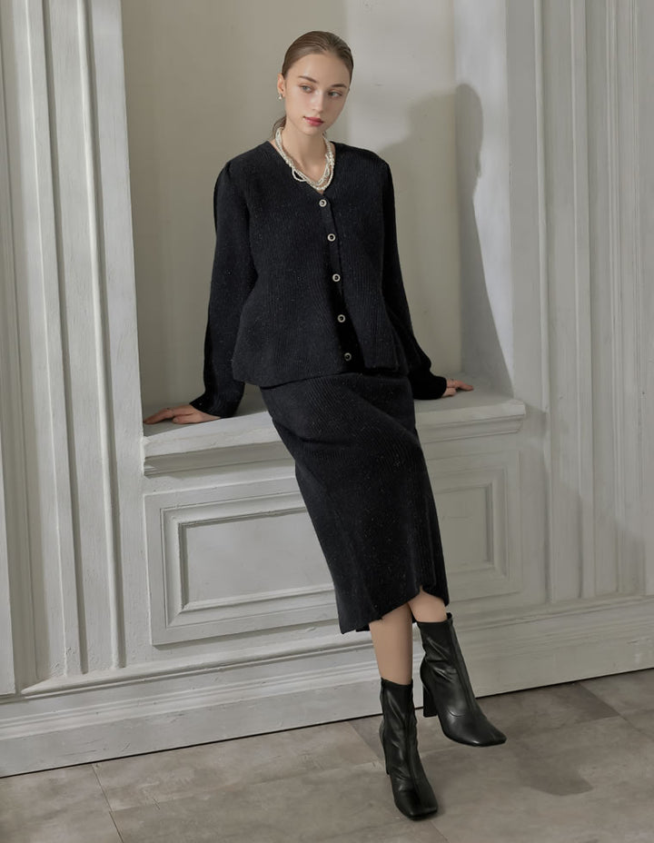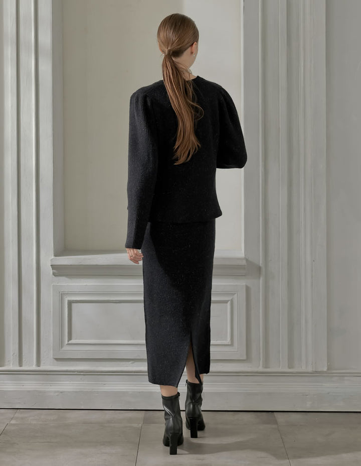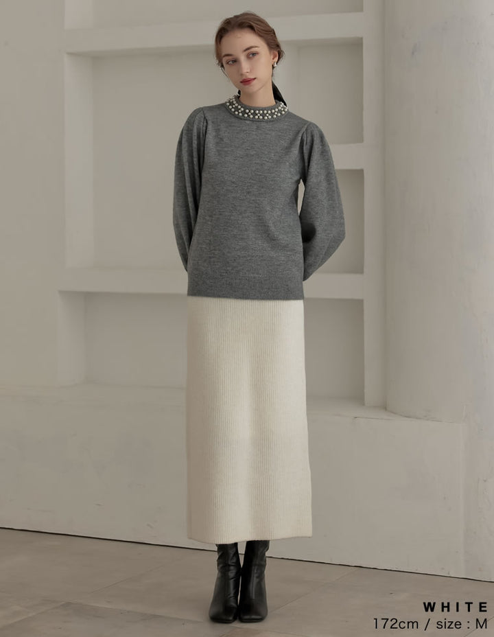 【MEISM LOOK BOOK 20%OFF対象】[MEISM by Re:EDIT][2025AW COLLECTION][低身長サイズ有]畦編みラメニットナロースカート