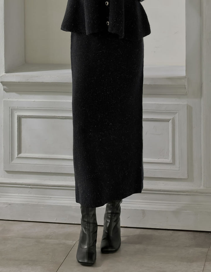 ふんわりと編み立てた畦編みニットに、繊細なラメ糸を織り込んだナロースカート。立体感のある畦編みと上品に煌めくラメが大人フェミニンな印象を引き立て、シンプルながらも華やかな存在感を放ちます。縦のラインを強調するナローシルエットとロング丈で、自然なスタイルアップ効果も。足さばきの良いバックスリットと、安心の裏地付きで快適な着心地を実現しました。程よい厚みのニットはヒップや腰まわりのラインを拾いにくく、体型を美しくカバー。着映えと着心地にこだわった、シーズンムード高まるニットスカートです。