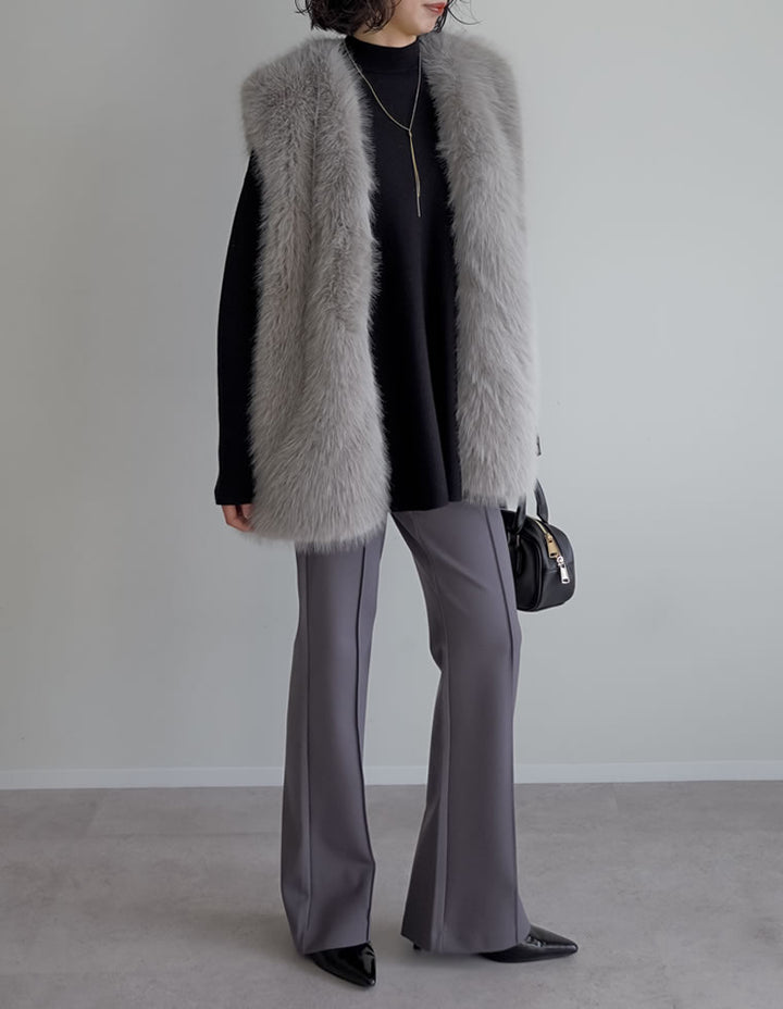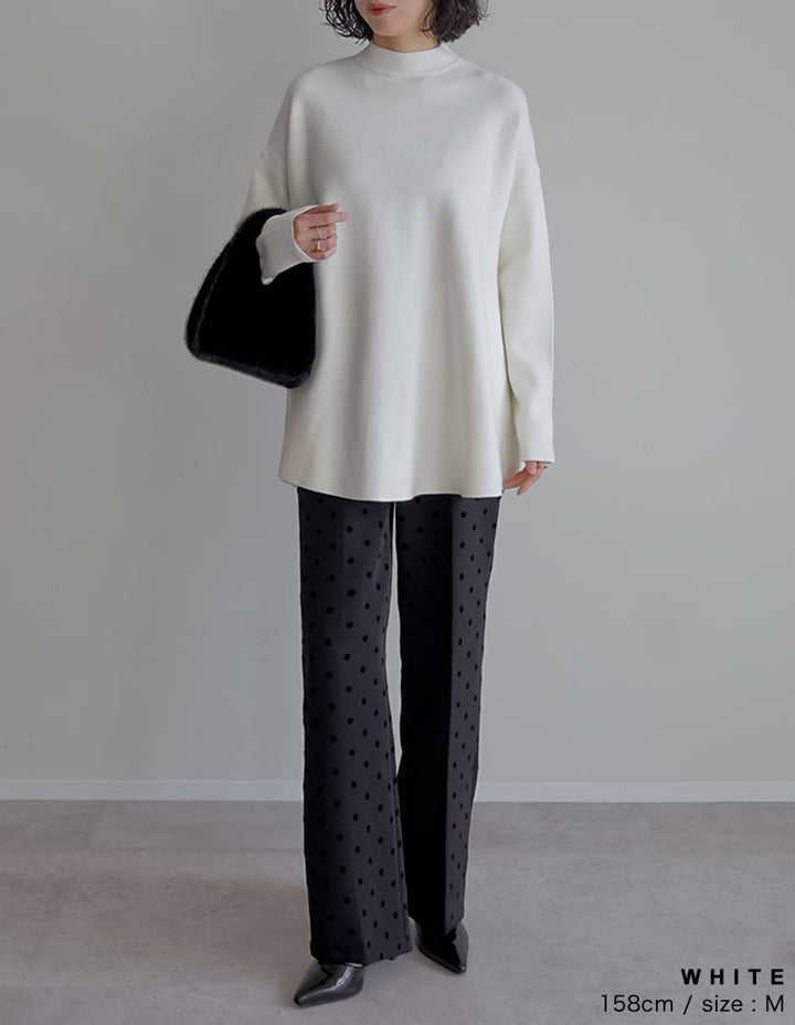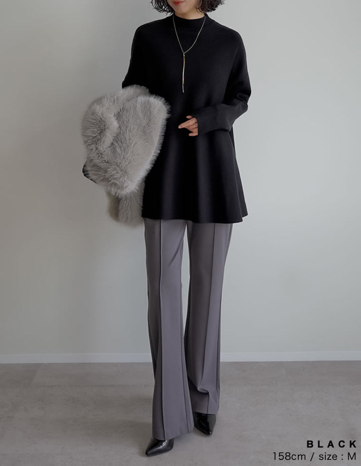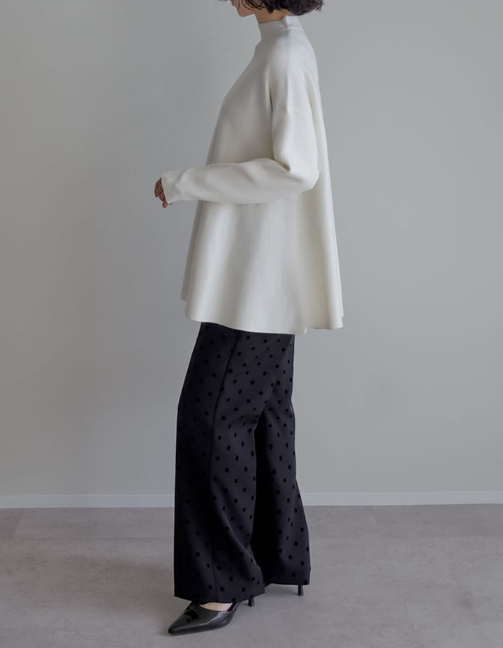 細身のパンツやテーパードパンツ、フレアパンツなどと好相性。