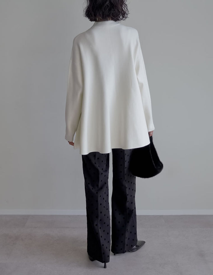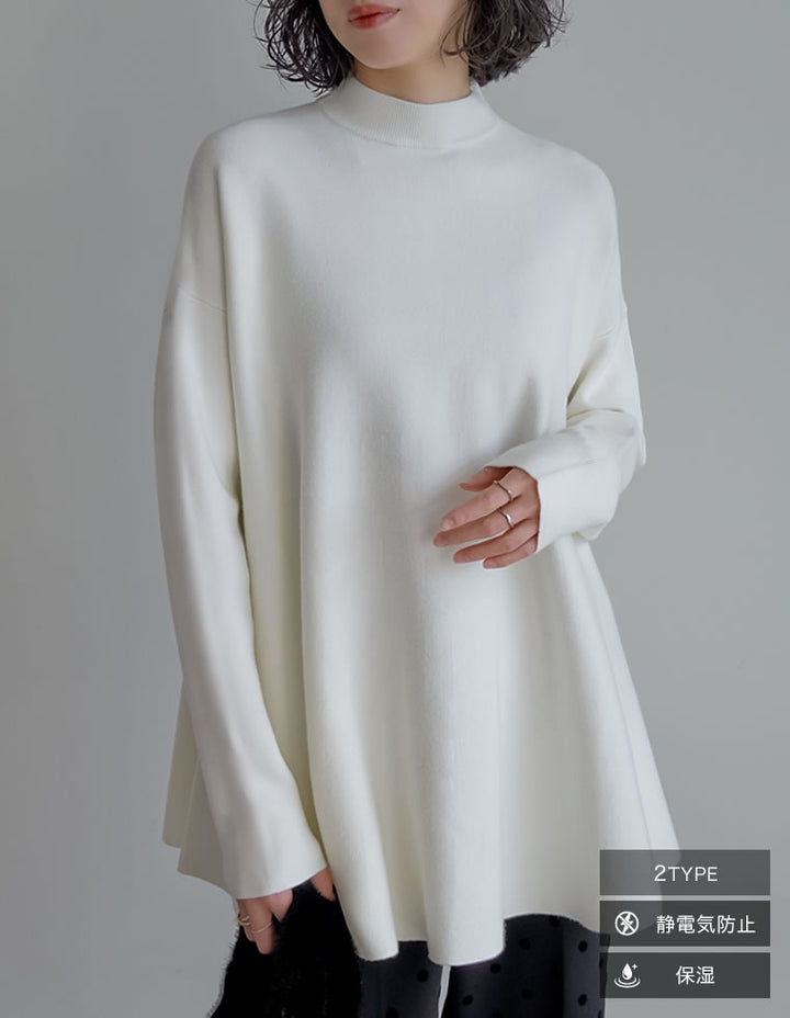 保湿・静電気防止機能を備えた、上品な総針ニットトップス。裾に向かってふんわりと広がるAラインシルエットで、女性らしい印象を演出します。ヒップが隠れるミドル丈で、気になるウエストや腰まわりをさりげなくカバー。ペプラムのように切り替えのない、ナチュラルなテントラインシルエットが特徴です。きれいめな総針編みで、メリハリのある立体感と上質な着映えを叶えます。