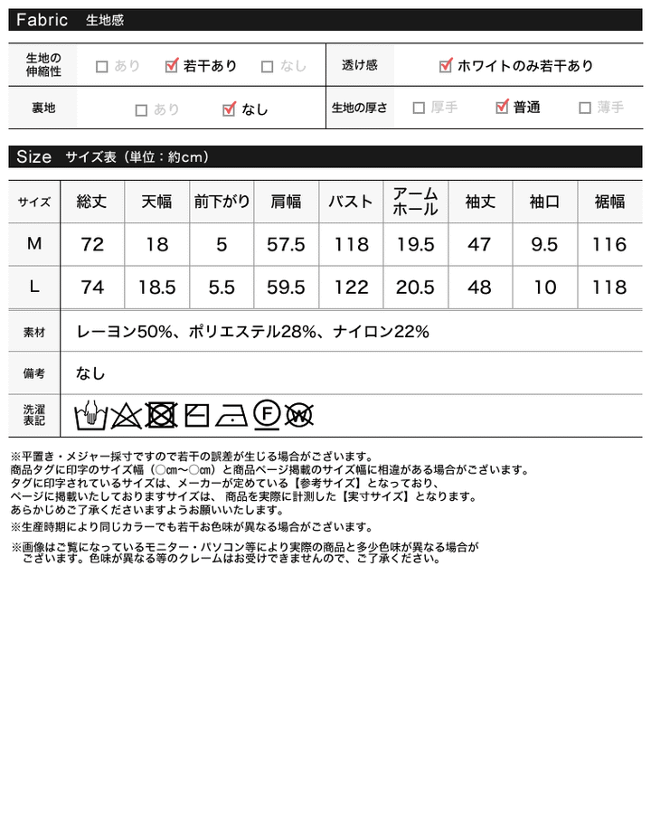 洗濯・アイロンをする際は、商品タグの品質表示をご確認ください。