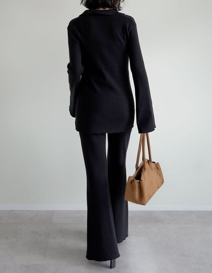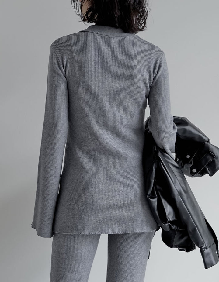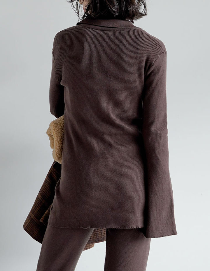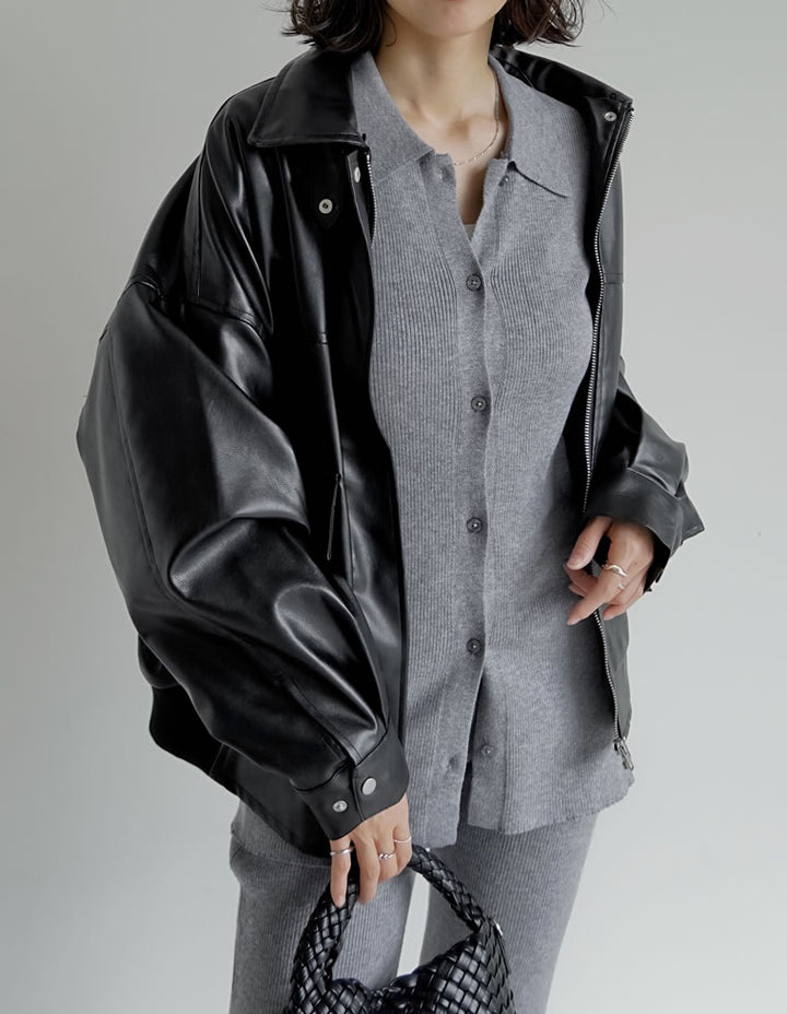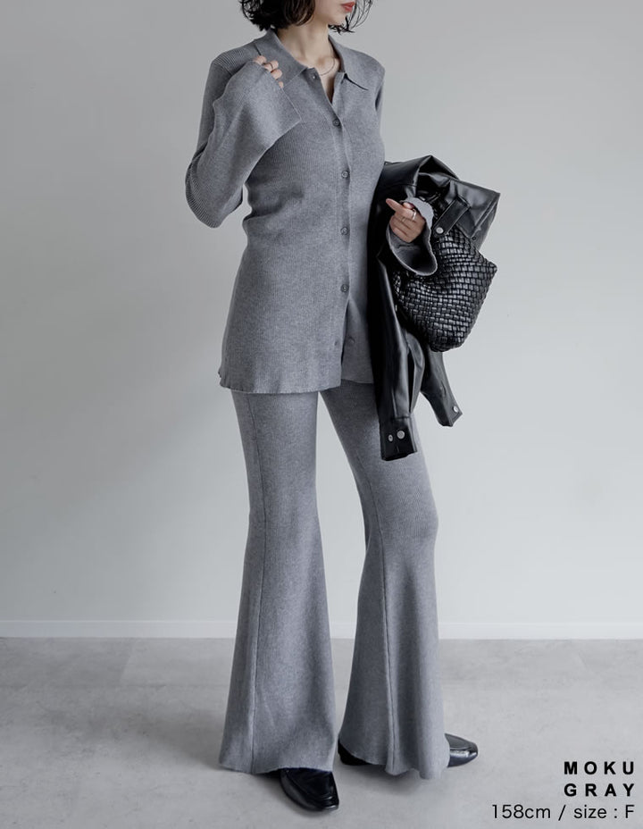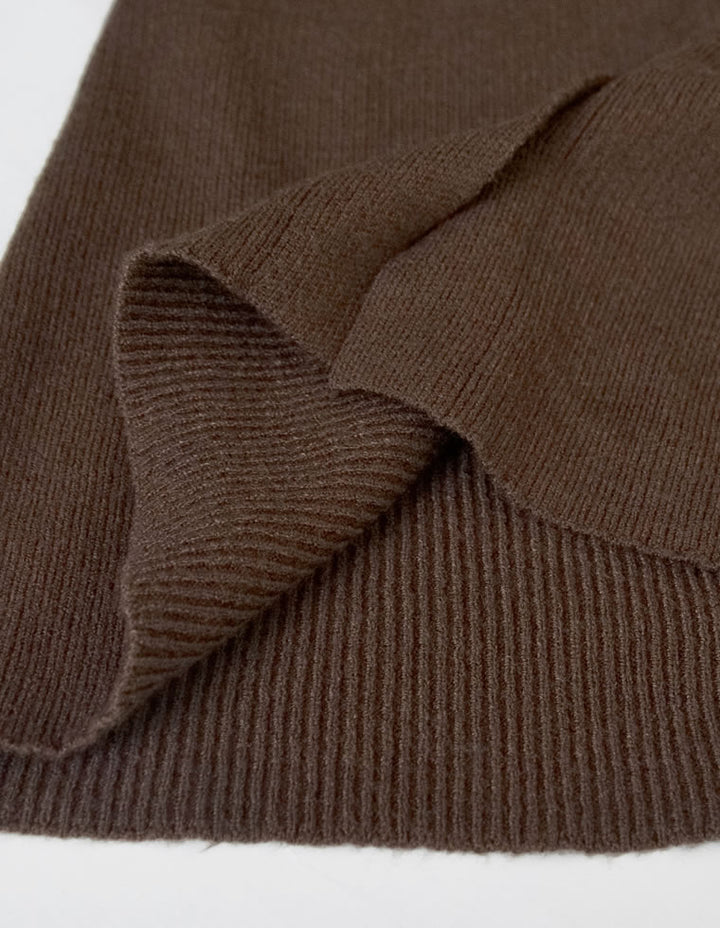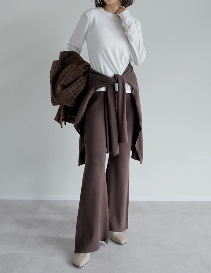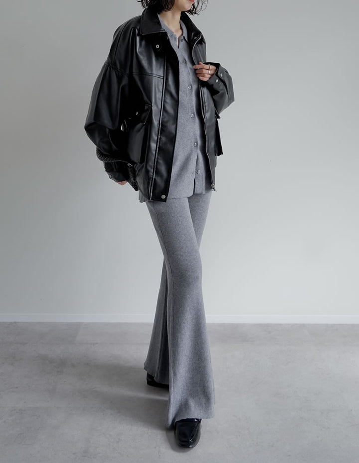 同素材のパンツ(商品番号:139838)とのセットアップスタイルはもちろん、デニムやリラックスパンツを合わせて抜け感のある大人カジュアルに。程よくフィットするリブニットなので、ジャケットやコートのインナーとしても着用できます。