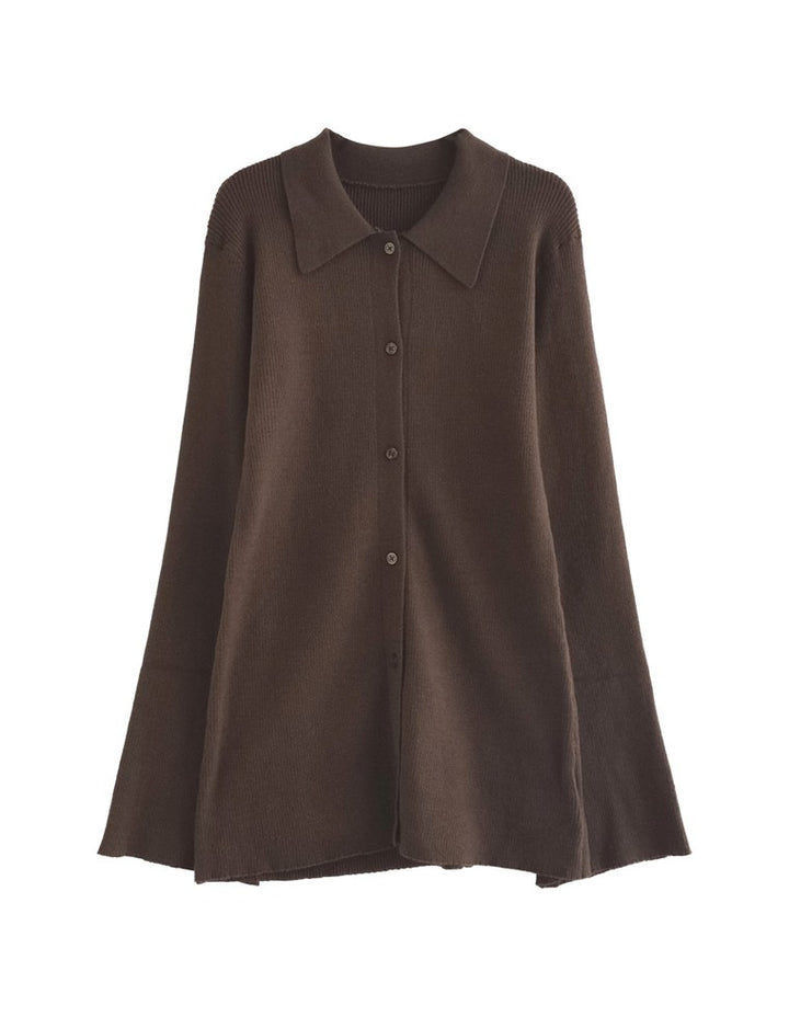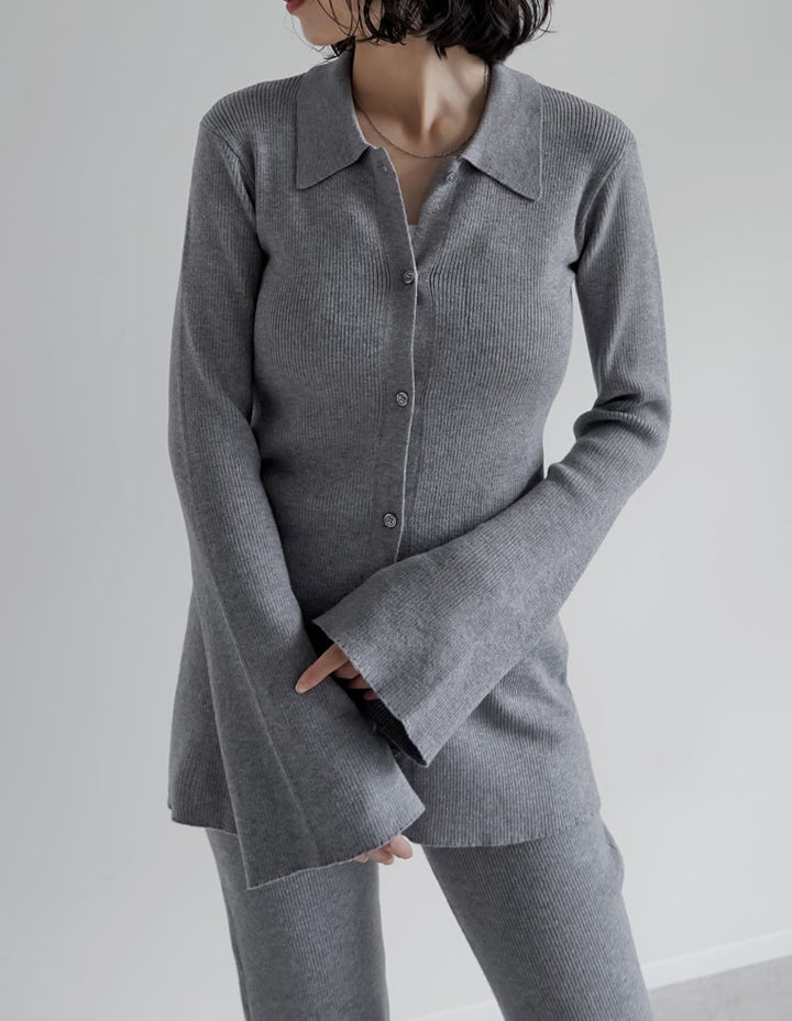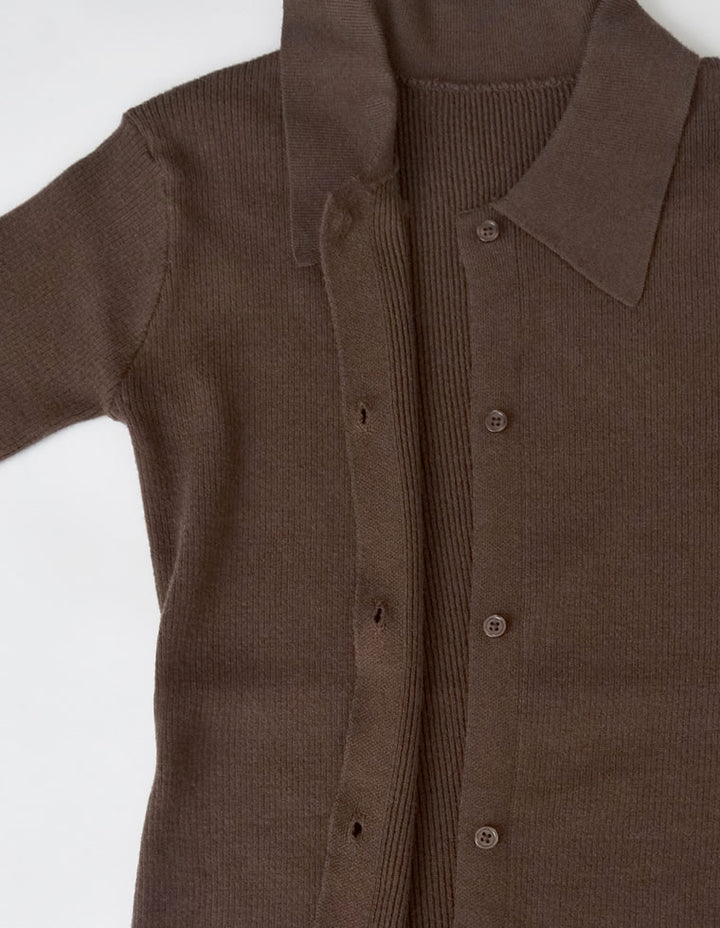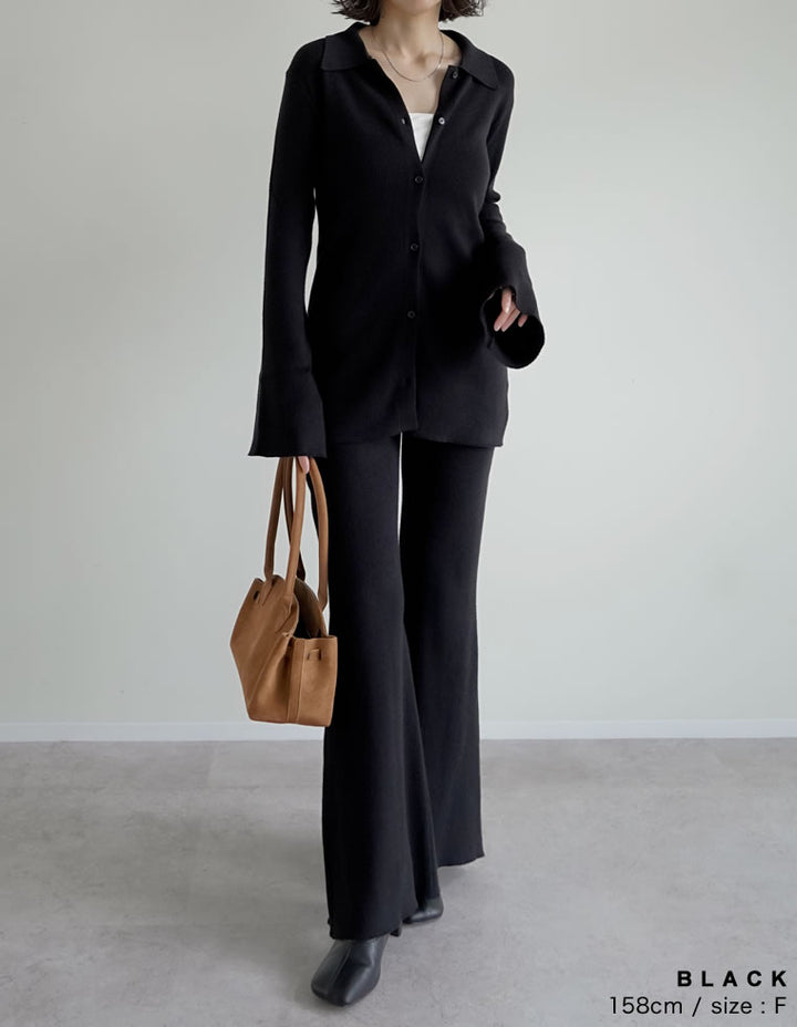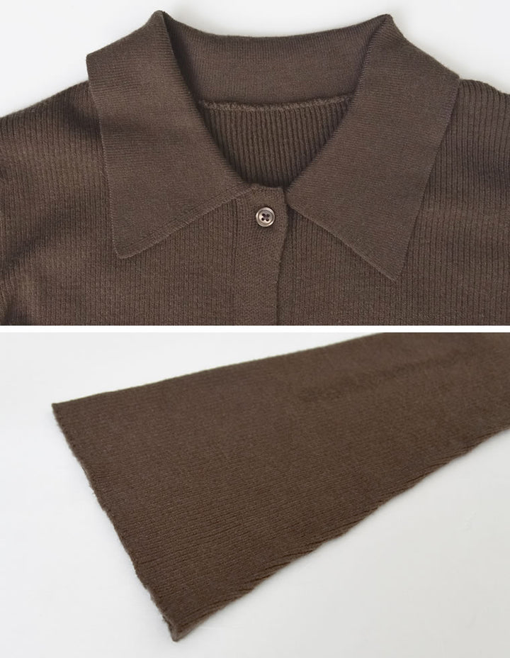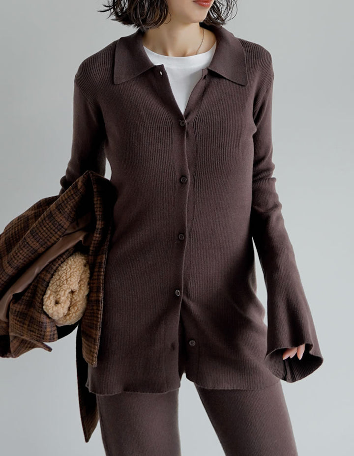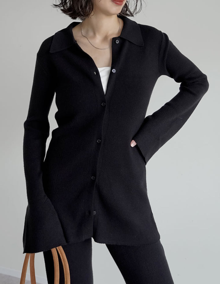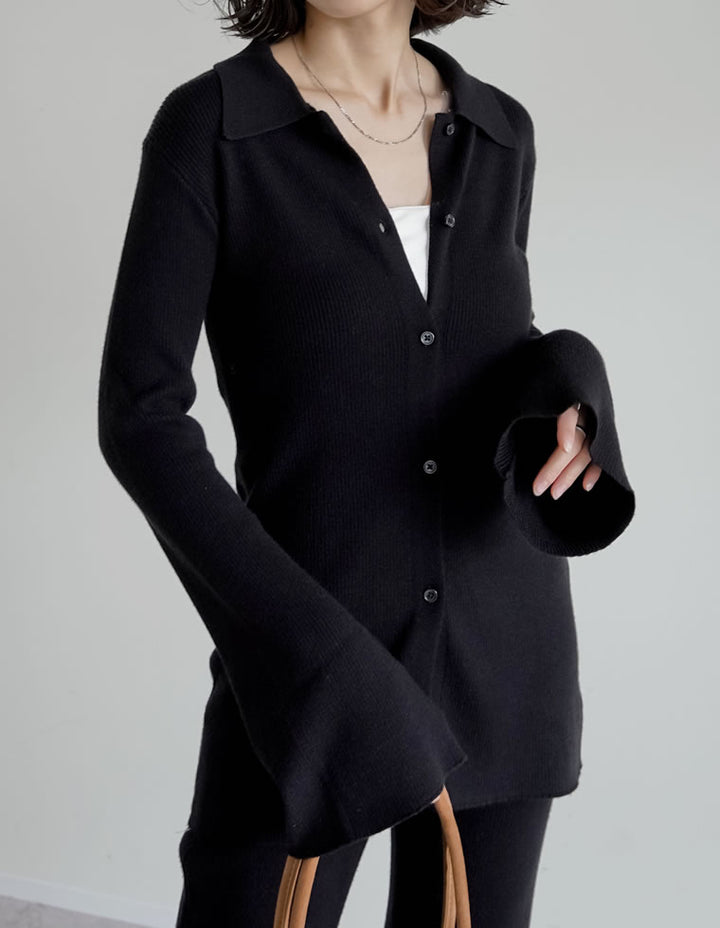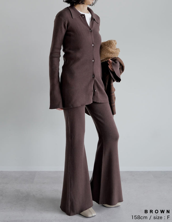 トレンド感のあるポロカラーデザインが魅力のニットカーディガン。襟付きの上品なデザインで、身体に優しく沿うシルエットが女性らしい印象に。柔らかく伸縮性のあるリブニットを使用し、ストレスフリーな着心地を叶えます。程よいフィット感で、きれいめにもカジュアルにも着こなせる万能アイテムです。袖口はさりげないフレアスリーブ仕様で、シンプルな中に華やかさをプラス。ボタンを留めればトップスとして、開ければ羽織りとしても活躍します。フォルム感のあるボトムや、同素材のニットパンツとのセットアップコーデもおすすめです。