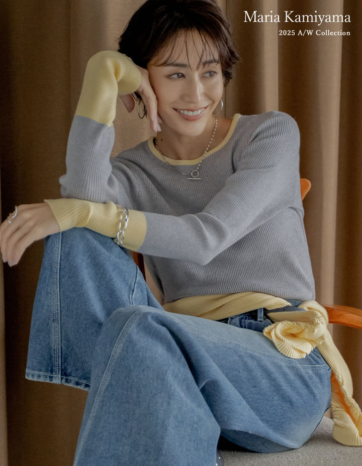 モードカジュアルなスタイルにマッチする、旬の配色リブニットが新たに登場。