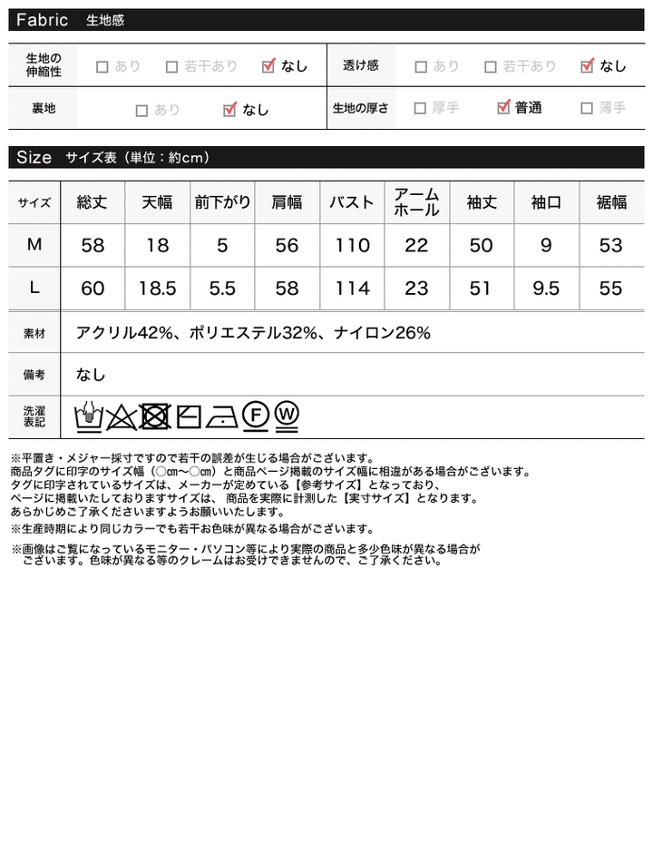 ※シルエットをくずさないために、保管の際はハンガーを使用せず、たたみ保管にしてください。