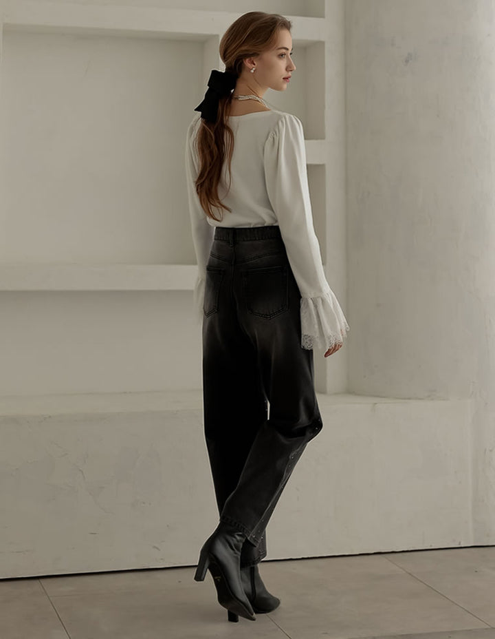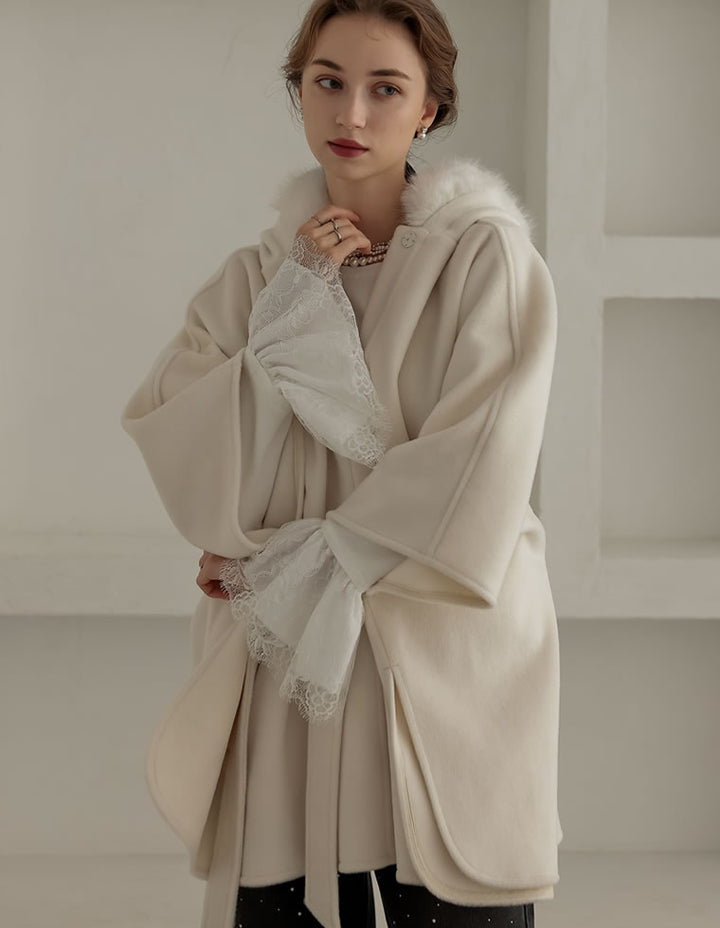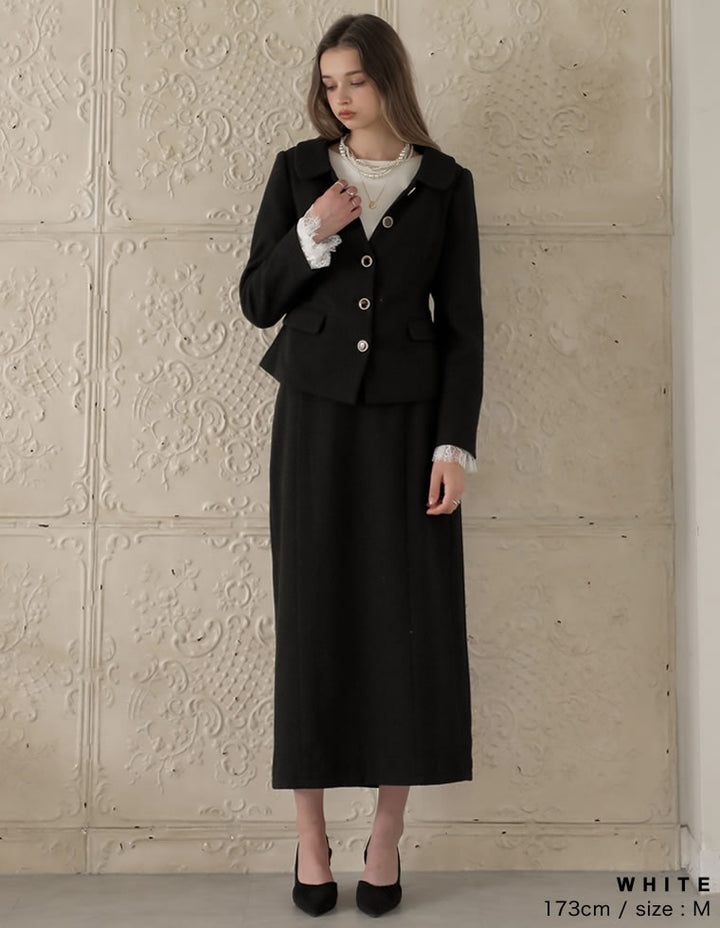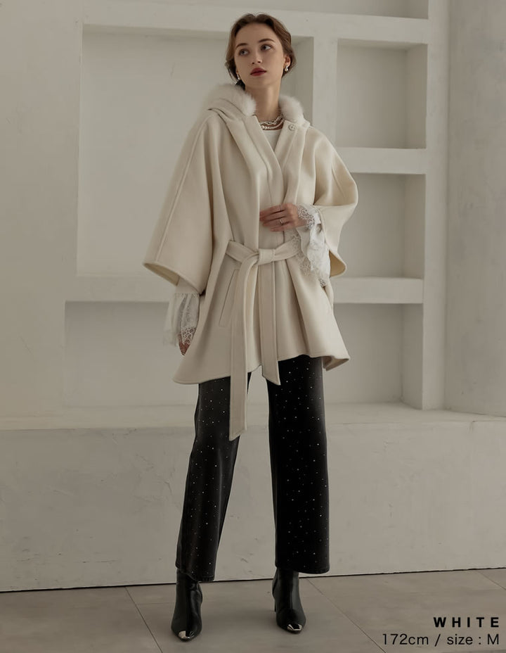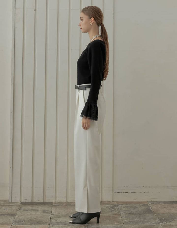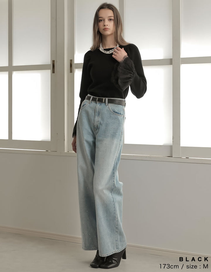 一枚で着ても存在感のあるニットですが、今季は袖口のレースをアウターから覗かせる着こなしがおすすめ。ジャケットやコートのインナーとして合わせると、袖からのぞくレースが華やかなアクセントとなり、今年らしいスタイルに。キャミワンピースやオールインワンのインナーとしても活躍し、レースフリルがエレガントなムードを演出します。デニムやスラックス、スカートなど、どんなボトムとも好相性で、きれいめにもカジュアルにも着こなせる万能な一枚です。