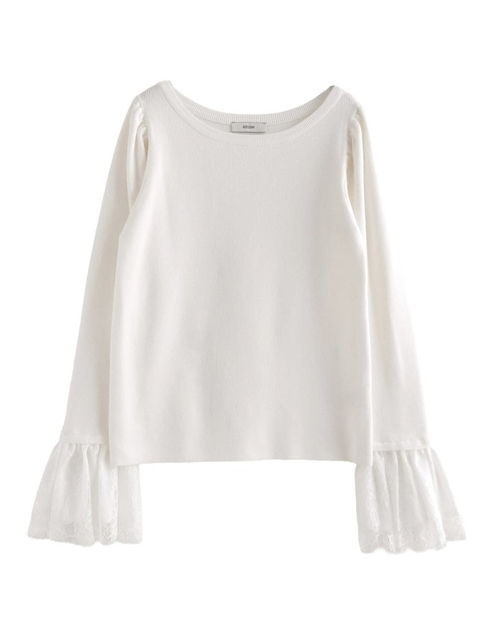 【MEISM LOOK BOOK 20%OFF対象】[MEISM by Re:EDIT][2025AW COLLECTION]リバーレースフリルボートネックニット