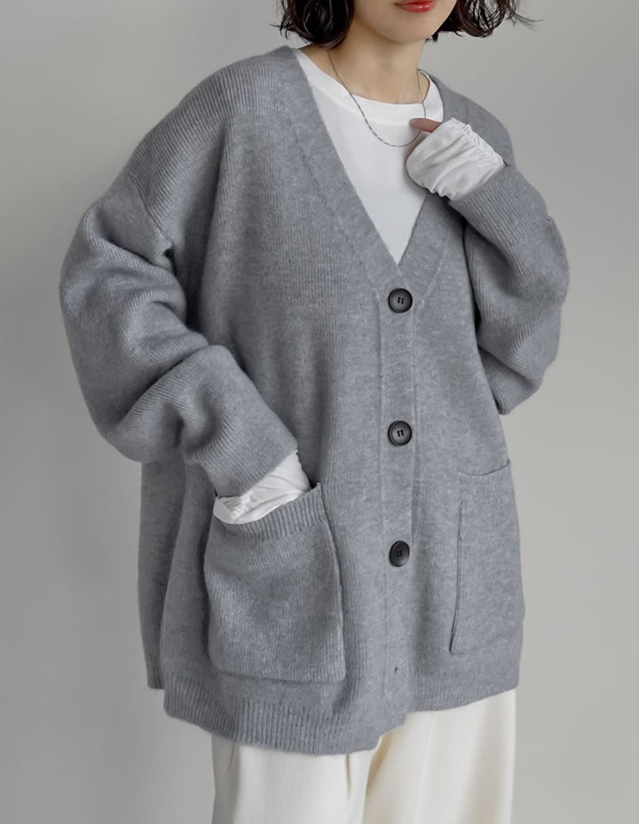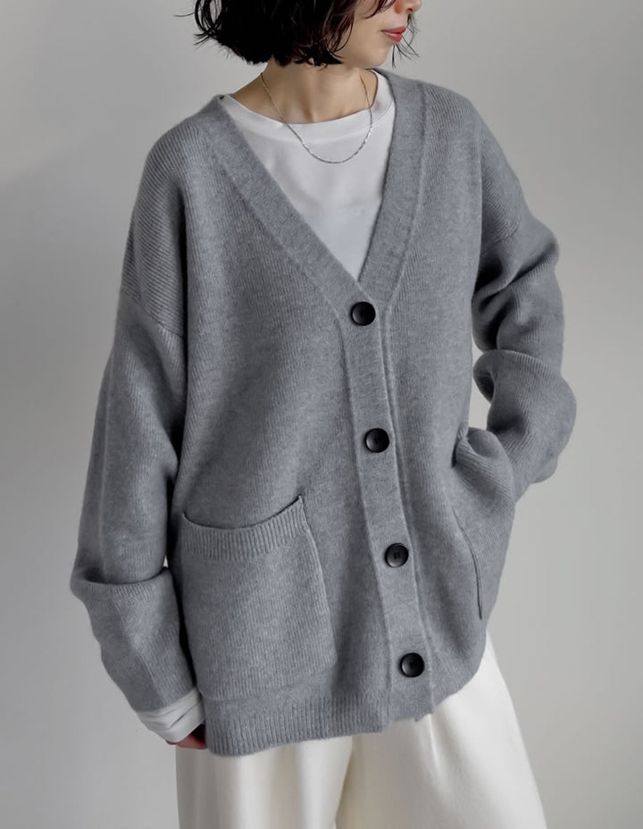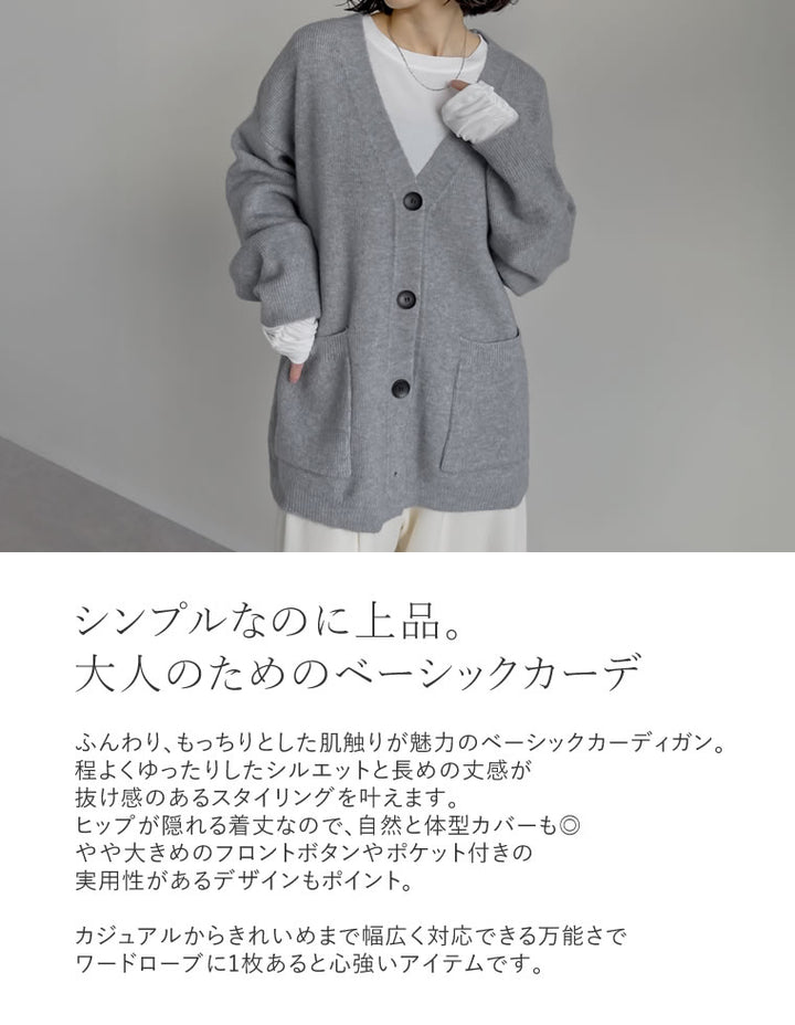 ふんわり、もっちりとした肌触りが魅力のベーシックカーディガン。