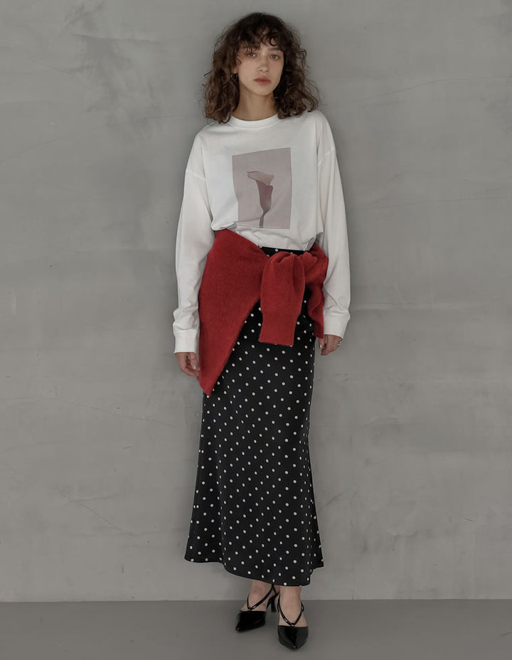 ナロースカートを合わせたオフィスカジュアルスタイルにもおすすめ。