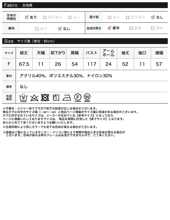 ※シルエットをくずさないために、保管の際はハンガーを使用せず、たたみ保管にして下さい。