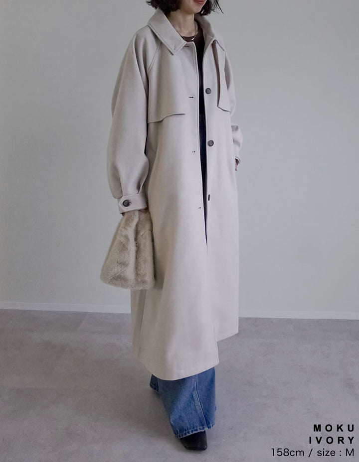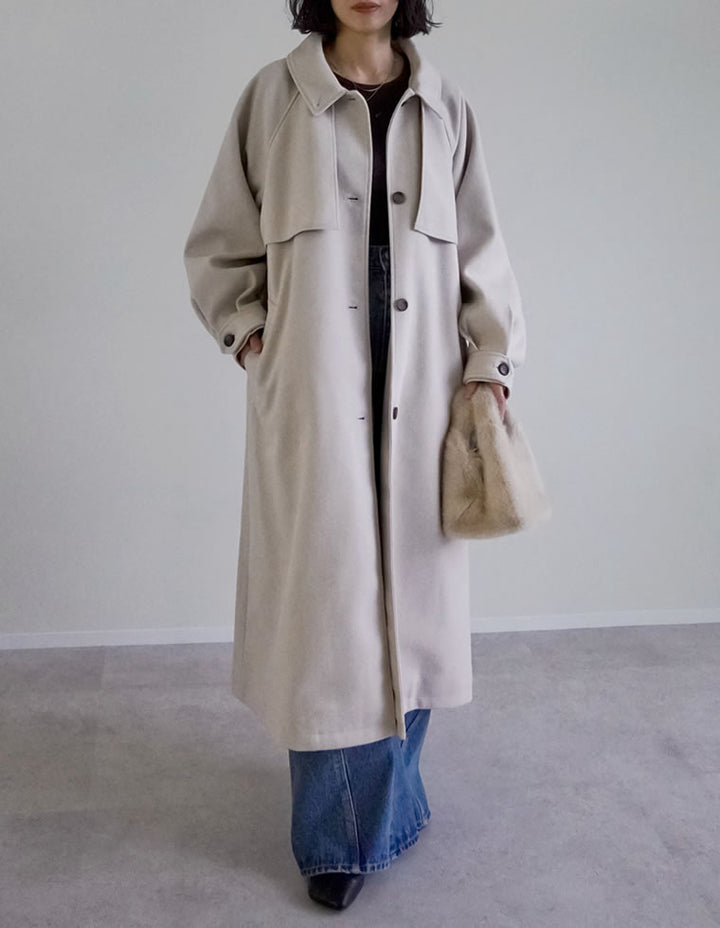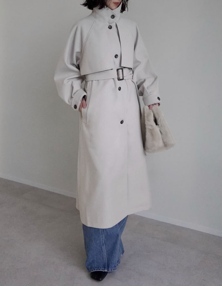 ワンピースの上にさっと羽織れば、抜け感のあるスタイリングに。ボタンを留めてAラインシルエットを際立たせれば、すっきりと上品な印象に仕上がります。付属のベルトでウエストマークをすれば、クラシカルで女性らしいシルエットに。ステンカラーとしてはもちろん、首元までボタンを留めることで真冬でも暖かく着用できます。