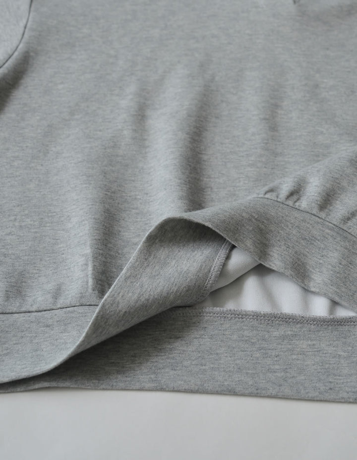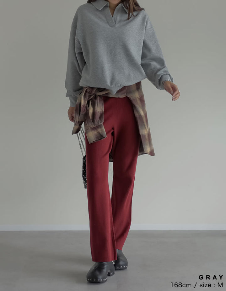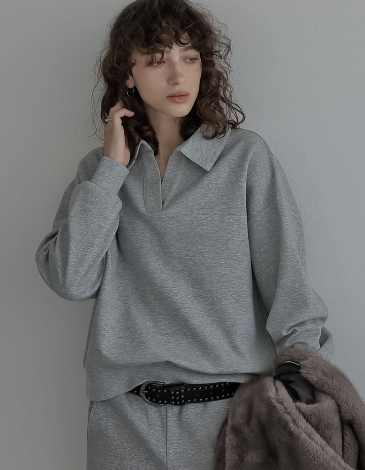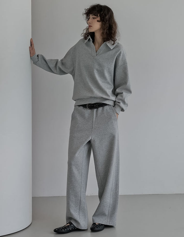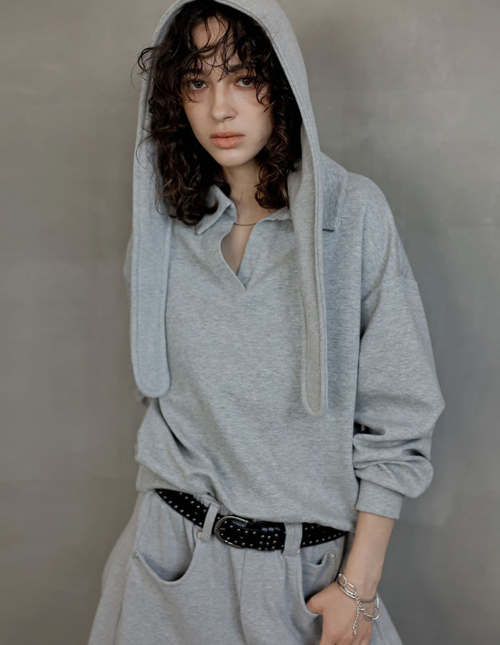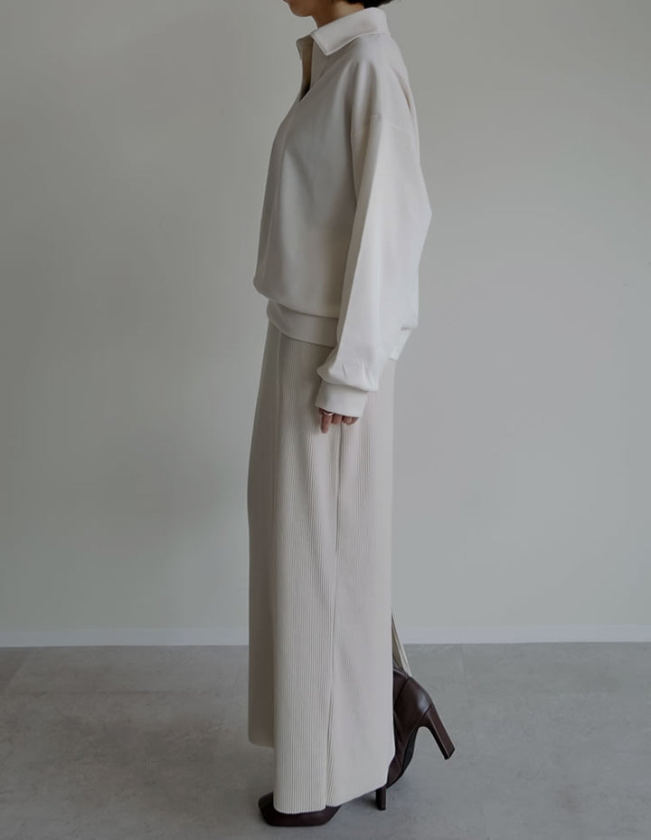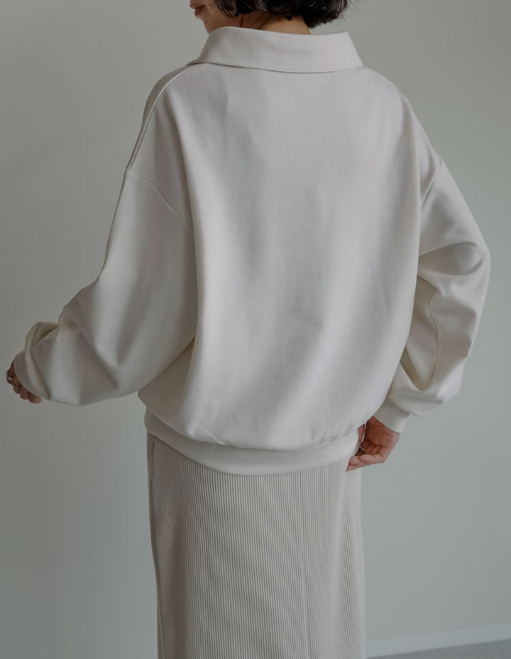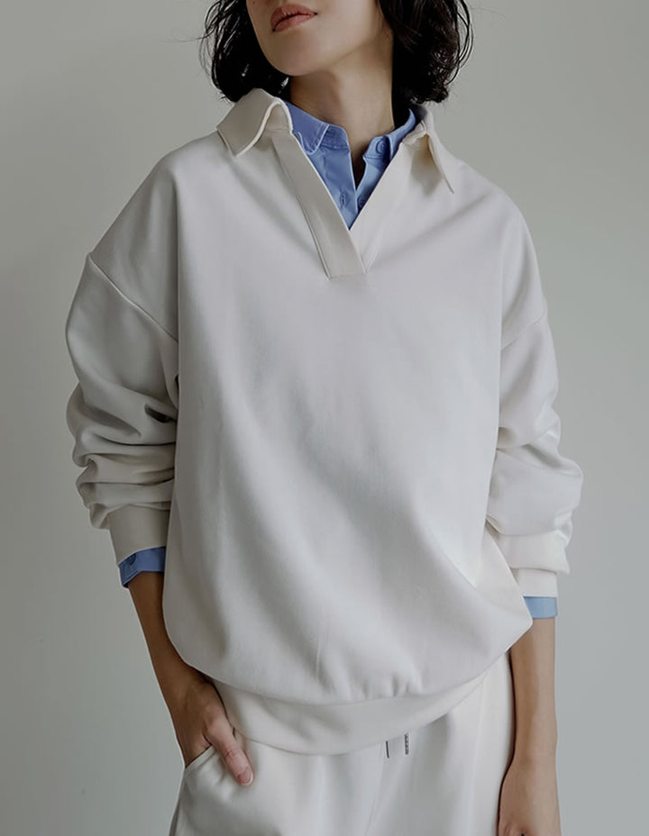 スウェットのようなカジュアルさに、きれいめなネックラインを掛け合わせることで、大人の抜け感を演出。