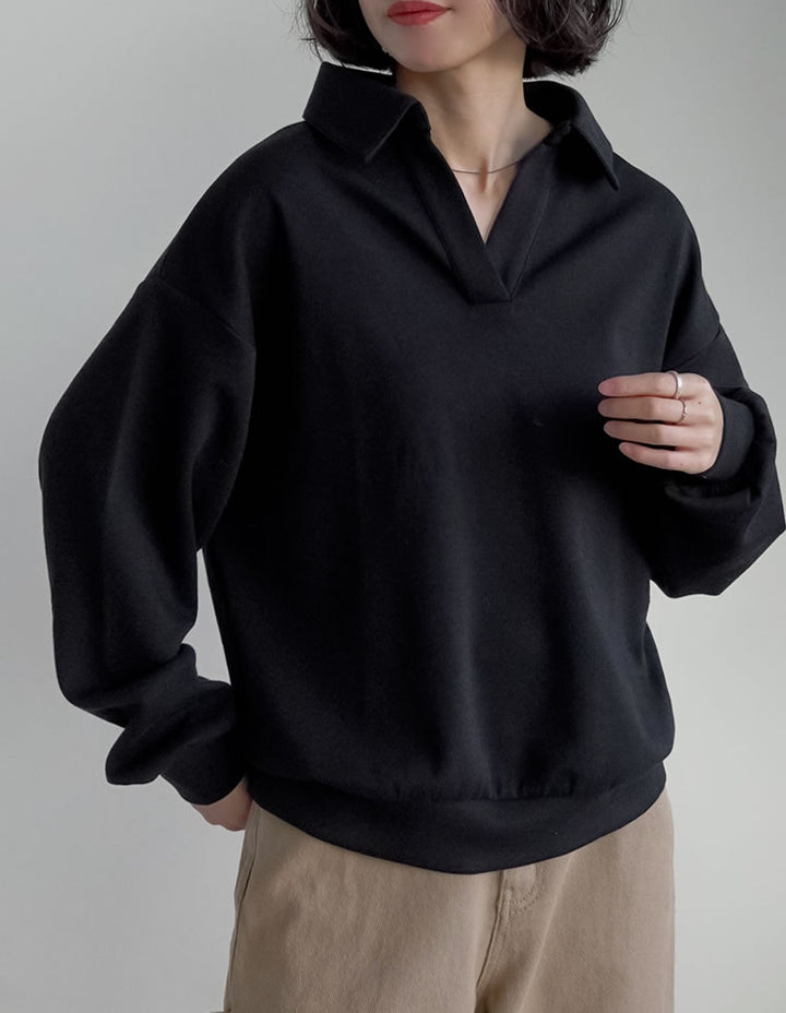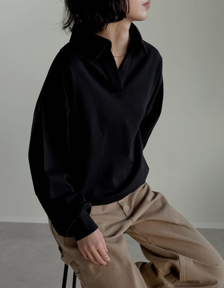 「スキッパー×襟付き」デザインを取り入れた、ライトダンボール素材のポロプルオーバー。