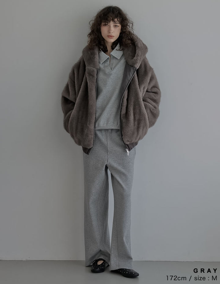 同素材のボトムを合わせれば、洗練されたワントーンスタイルに。