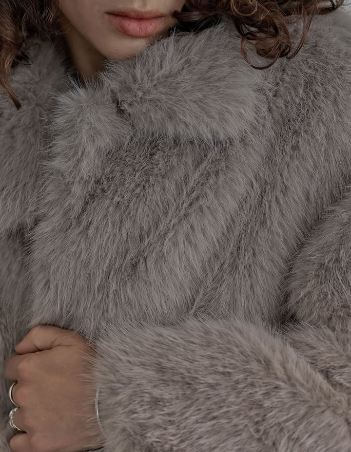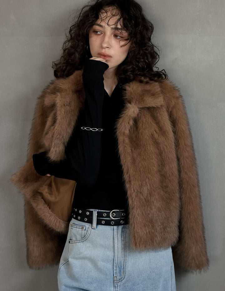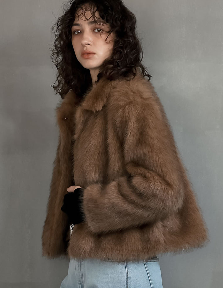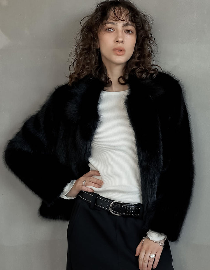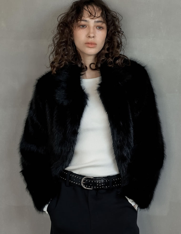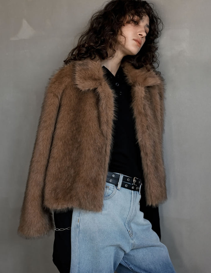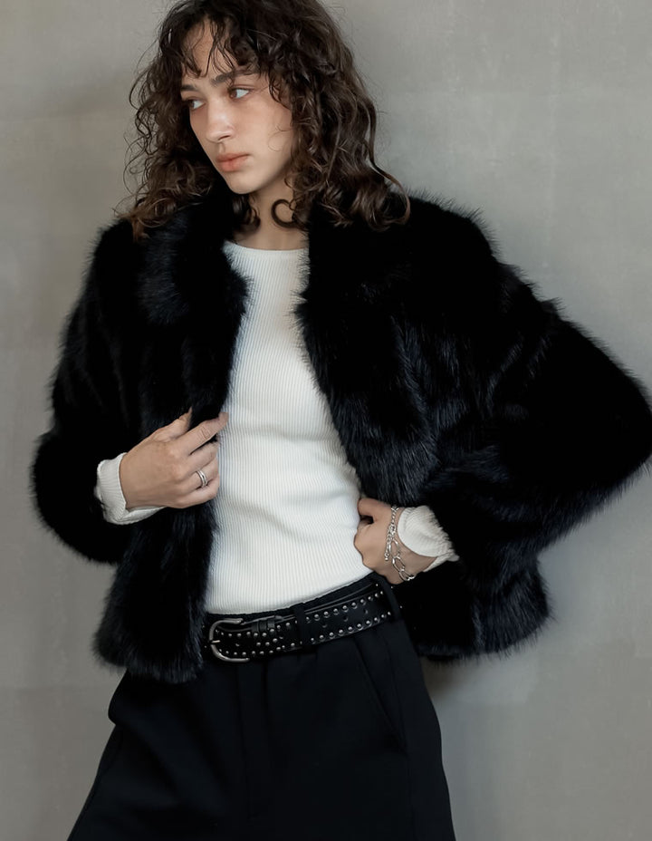 リアルファーのような毛足長めの表情豊かなミックスファーが、コーディネートをクラスアップ。