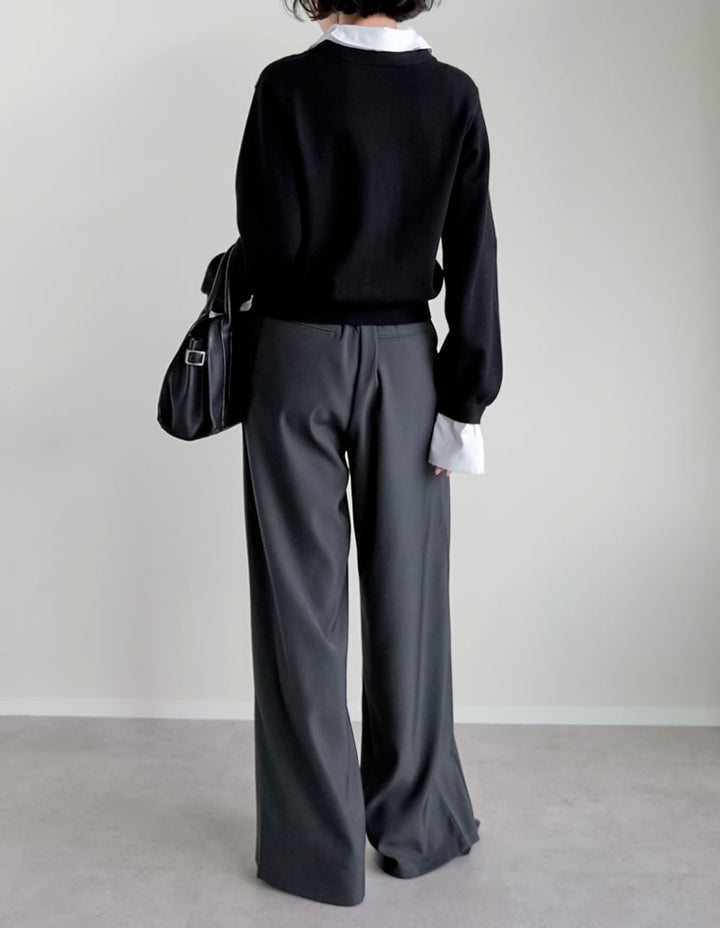 スラックスパンツと合わせて、オフィススタイルにもおすすめ。