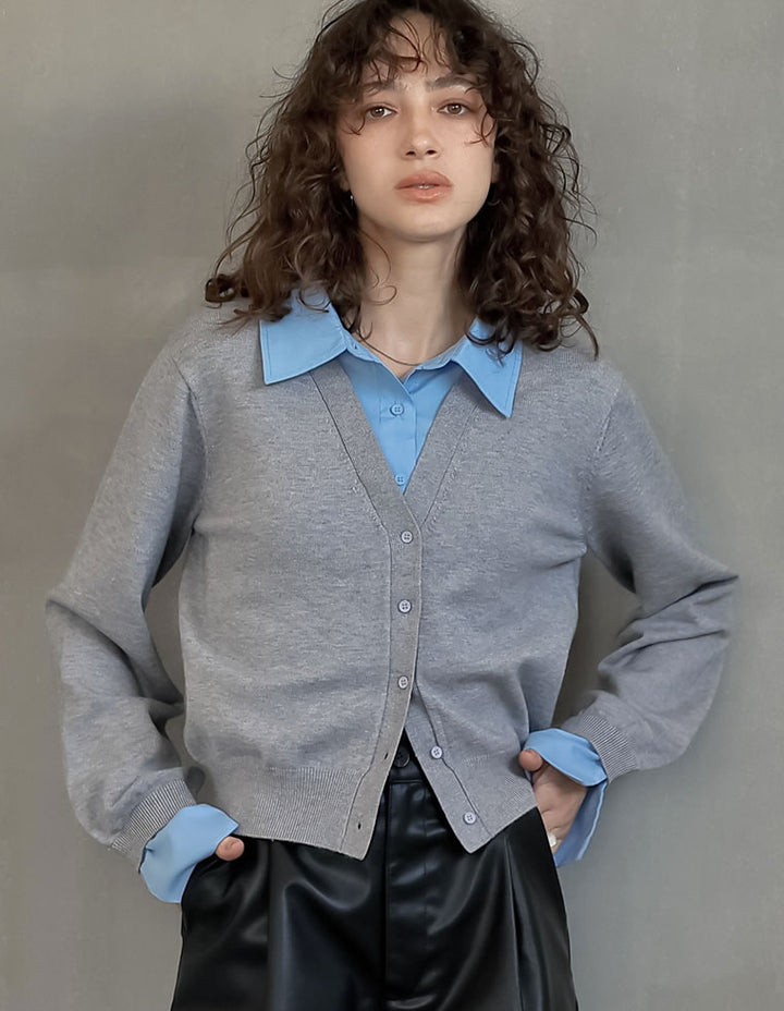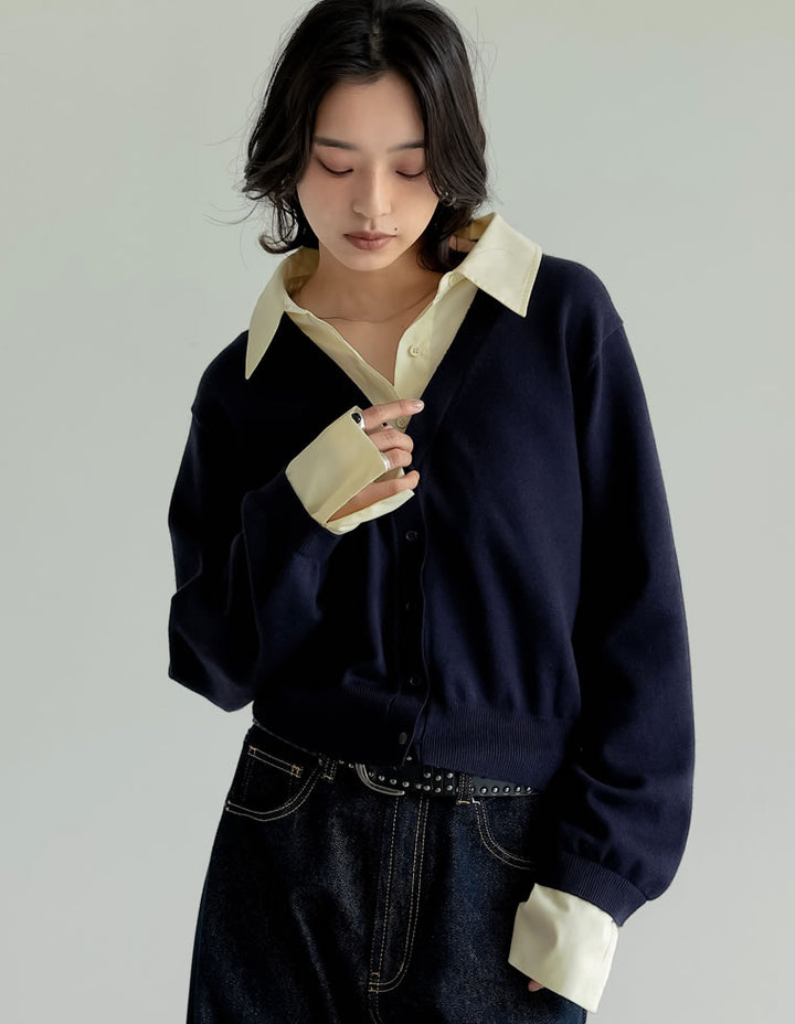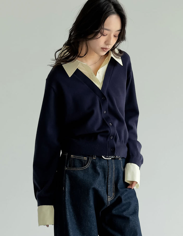 [2025AW COLLECTION]シャツドッキングレイヤード風ニットカーディガン
