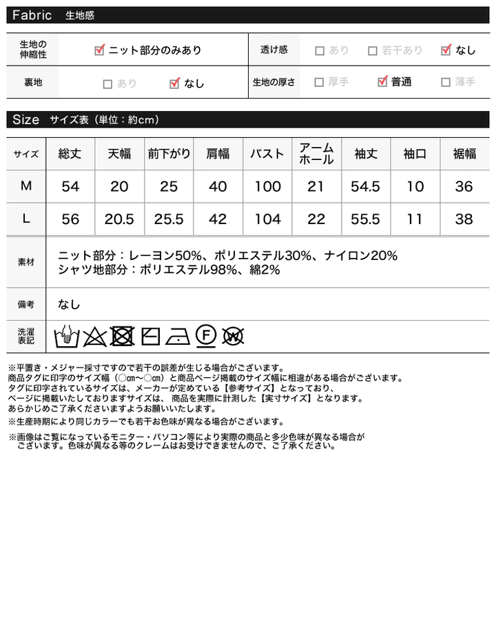 ※シルエットをくずさないために、保管の際はハンガーを使用せず、たたみ保管にしてください。