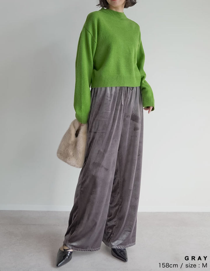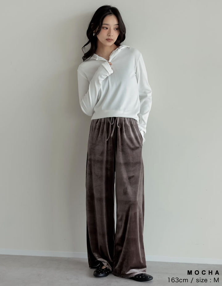 表情豊かな素材感が、大人の洗練された着こなしにマッチするベロアパンツです。