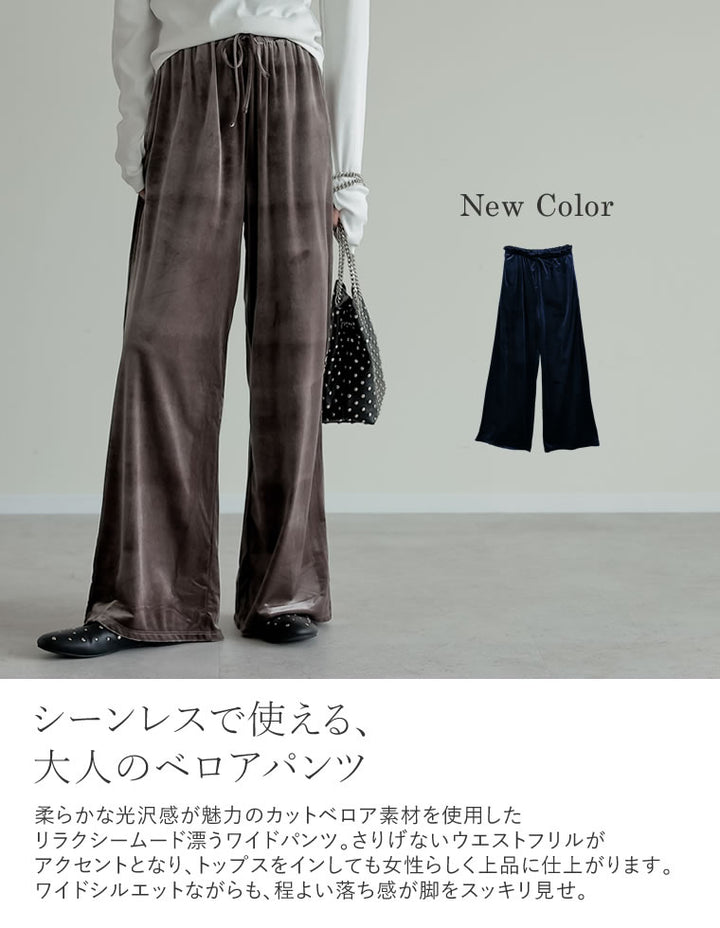 【クーポンで20%OFF ¥4,998⇒¥3,998 】〖クーポンコード:SH_20_2510〗[2025AW COLLECTION][低身長/高身長サイズ有]カットベロアドロストリラクシーパンツ