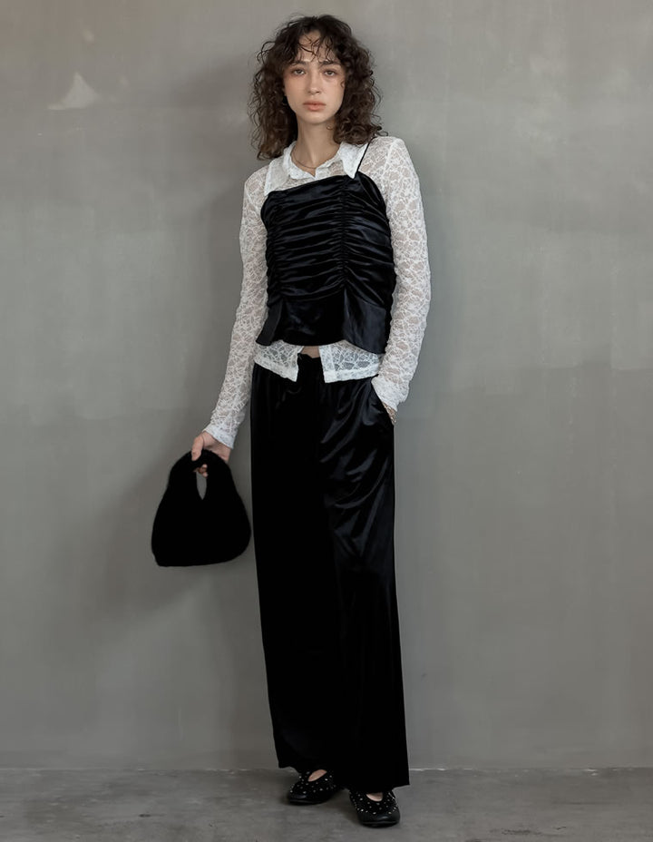 同素材のビスチェと合わせて、モードなセットアップスタイルもお楽しみいただけます。