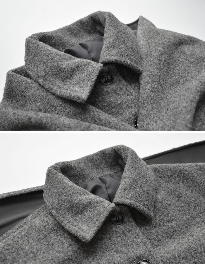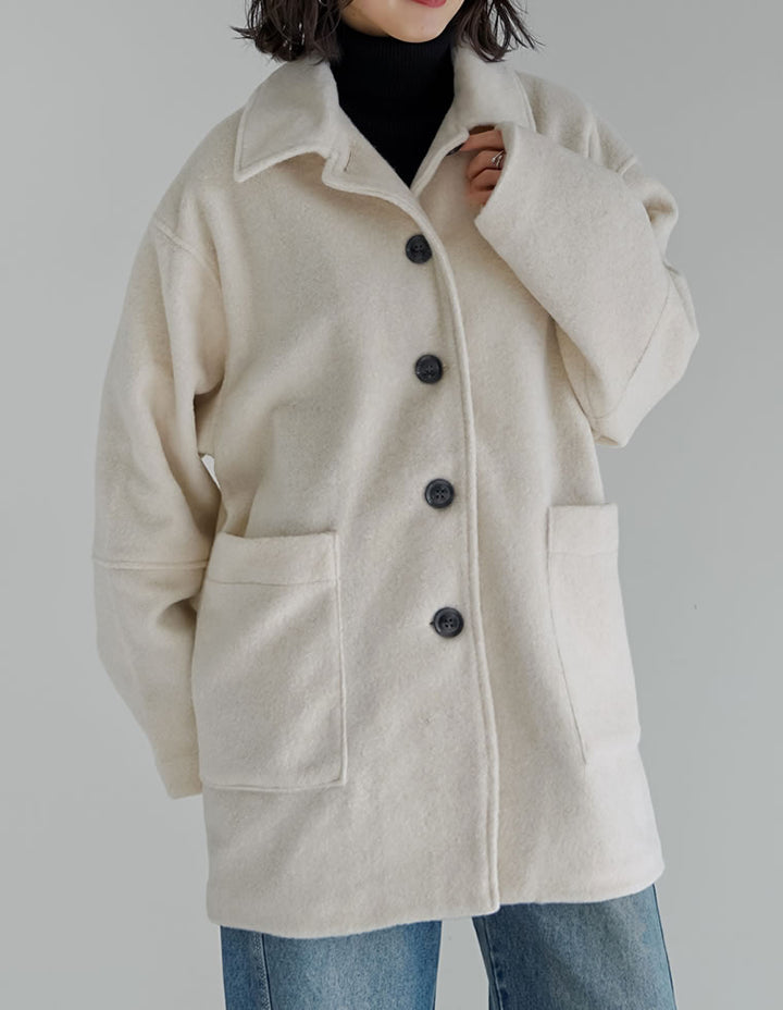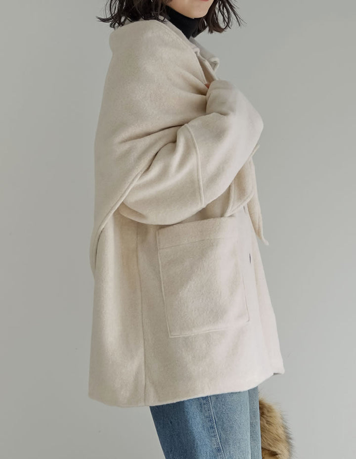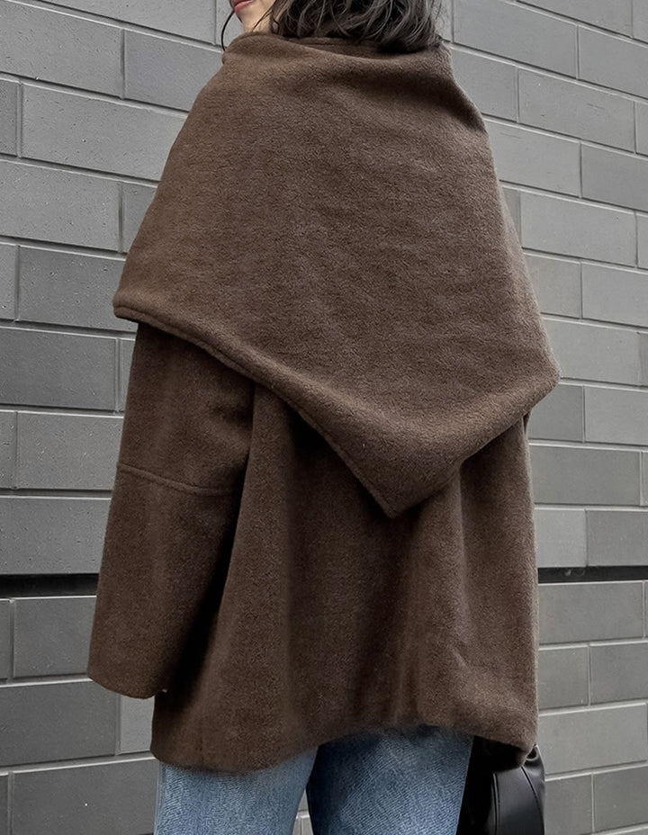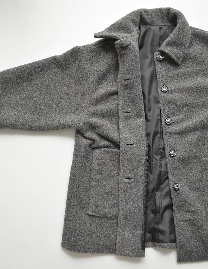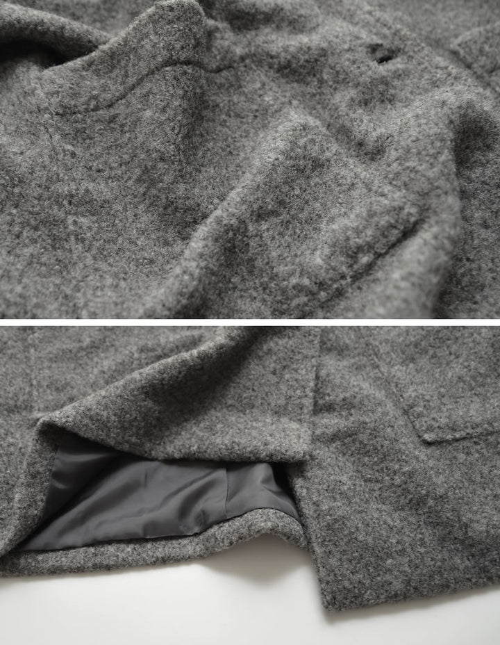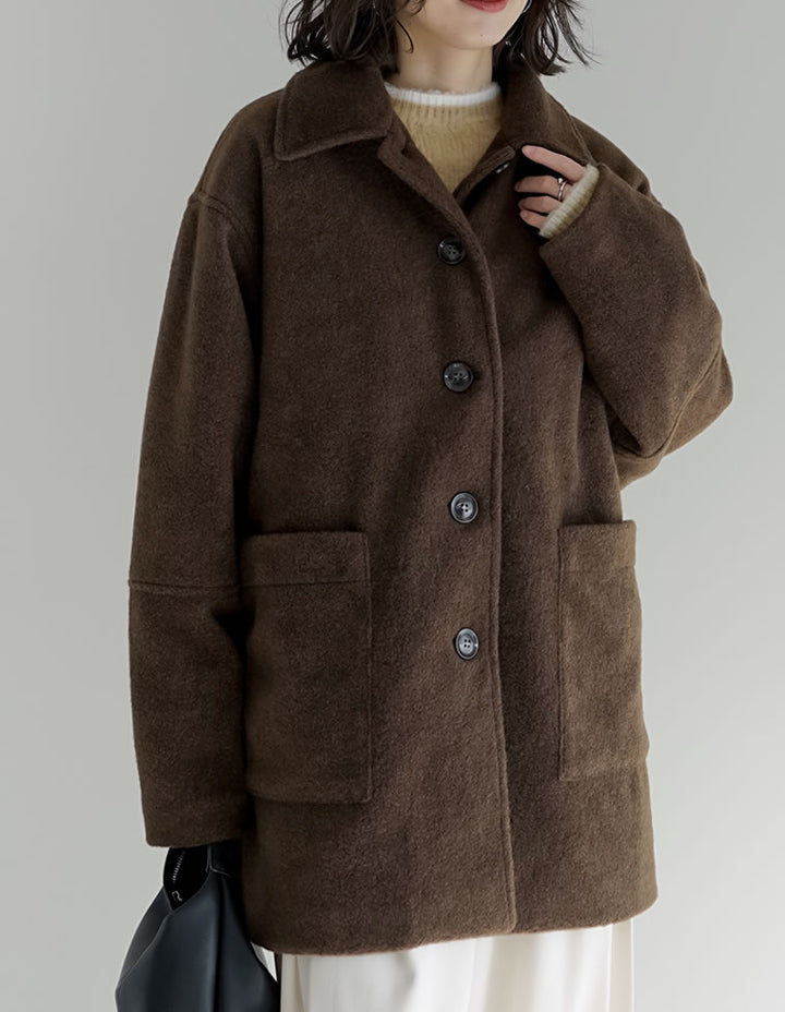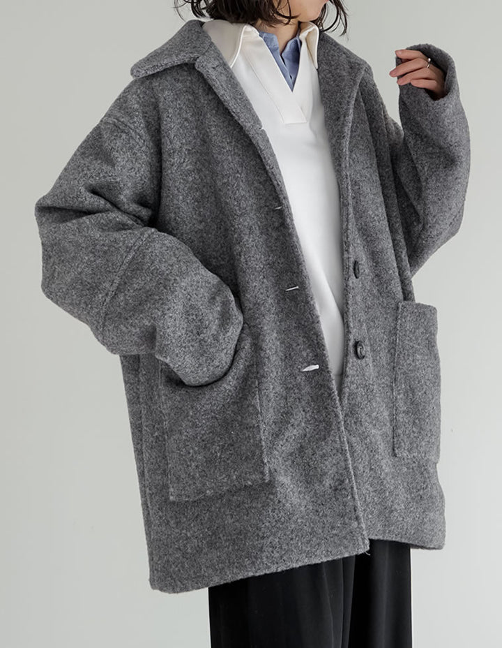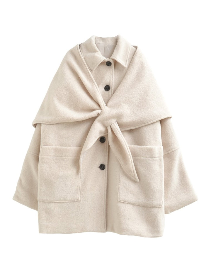 ショールと2点セットになったステンカラーコート。襟付き&前ボタンのベーシックなミドルコートに、同生地のショールがセットになりました。ショールには穴あきデザインを施しており、前で留まりやすく、ずれにくいのも魅力です。ショールなしでも着用でき、シーン問わず活躍します。起毛感のある表情豊かな生地と裏地付きで、暖かく真冬まで着用可能。ミドル丈でさっと羽織りやすく、着こなしの幅が広がるアウターです。