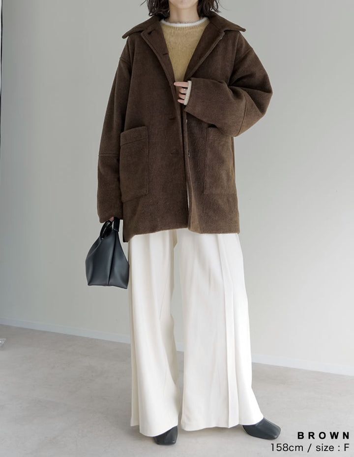 デニムやタックパンツを合わせて、きれいめカジュアルな雰囲気に。ワンピースにさっと羽織る着こなしもおすすめです。起毛感のあるパンツを合わせると、より秋冬らしいコーディネートが楽しめます。