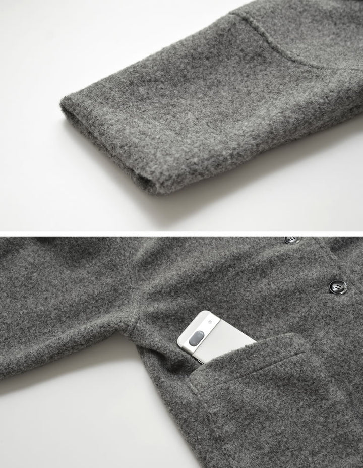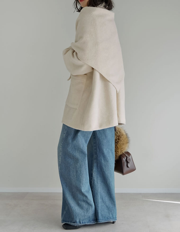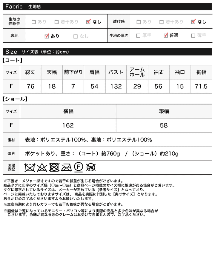 軽い着心地で起毛感のある素材アウターとショールには裏地がつきます。