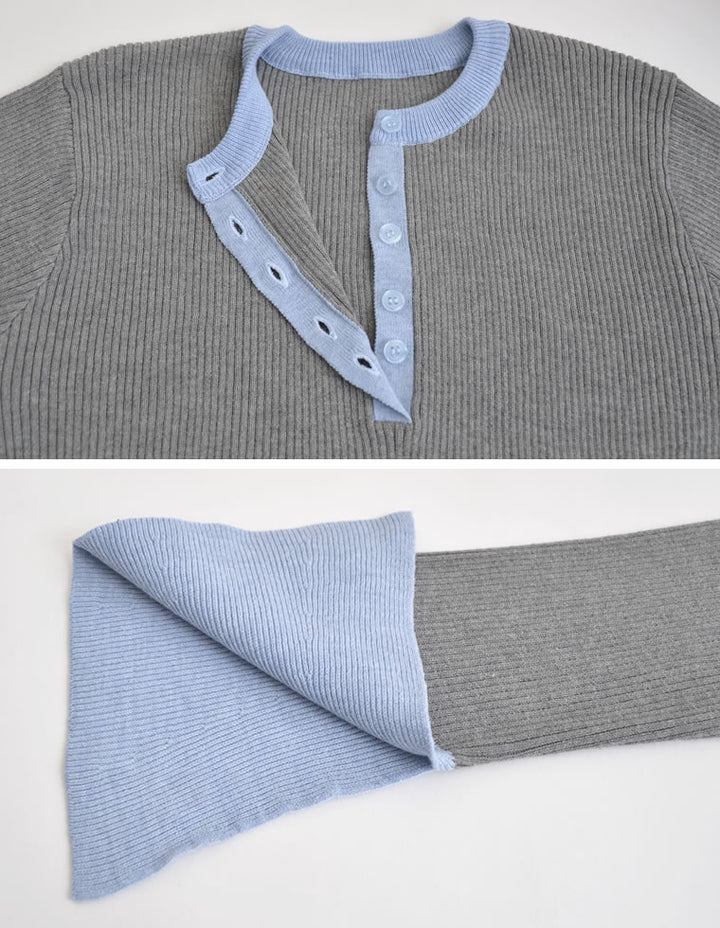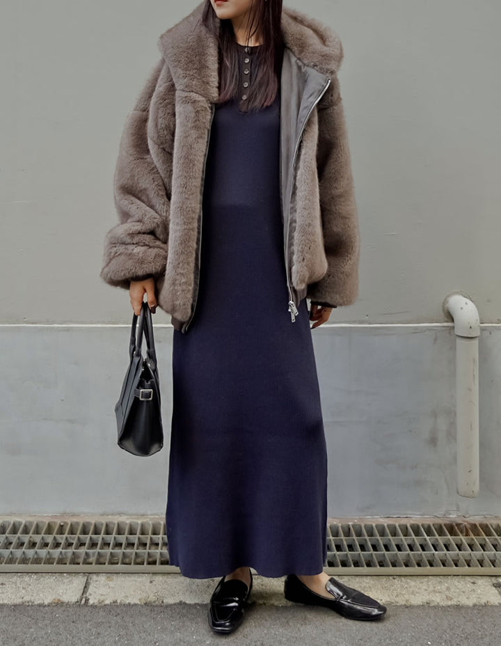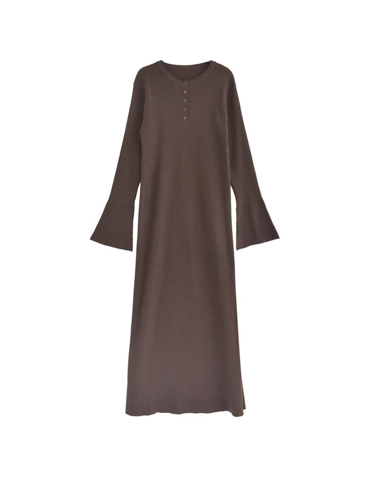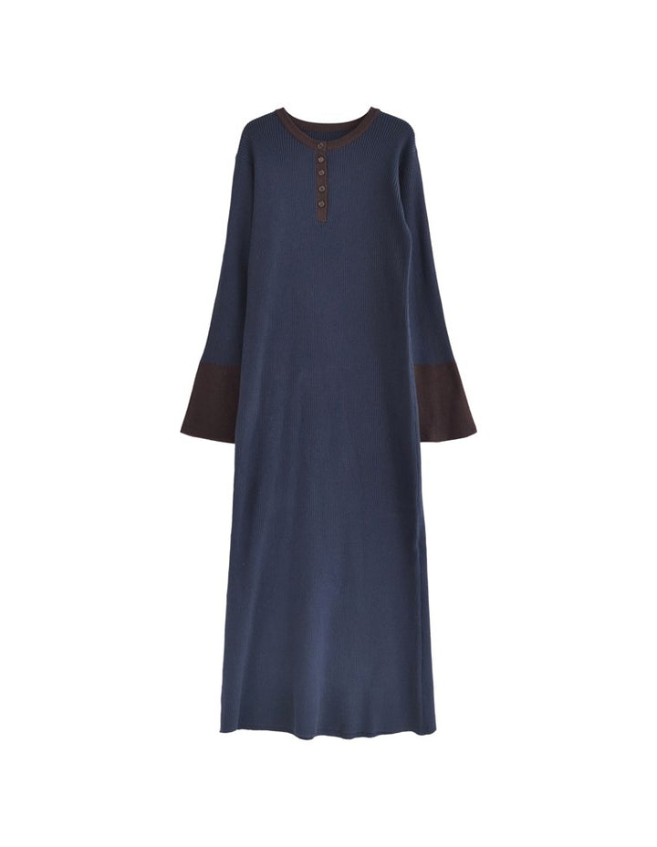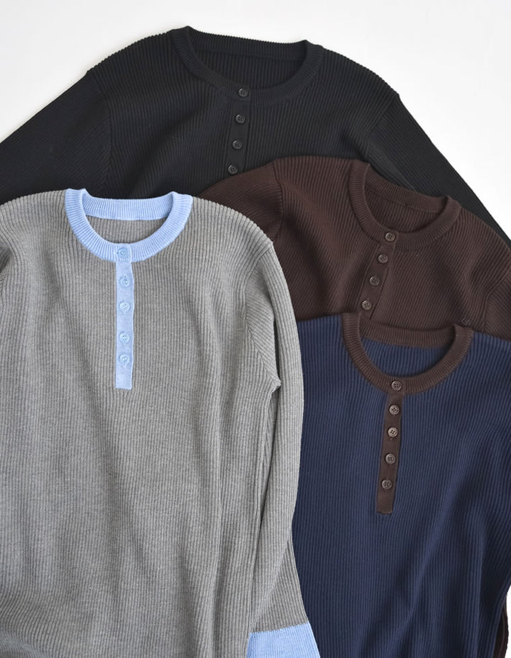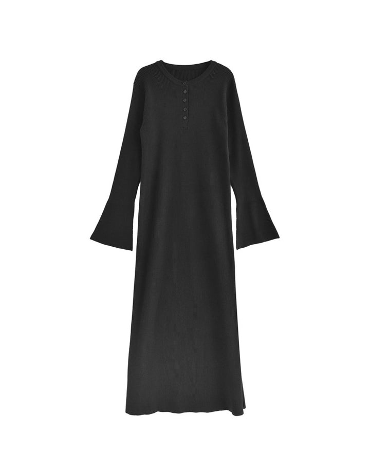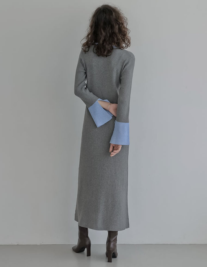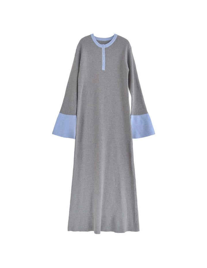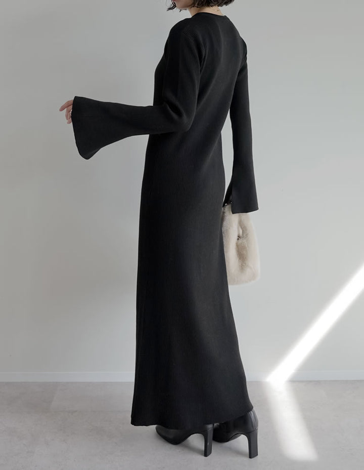 [2025AW COLLECTION][低身長サイズ有]配色or無地ヘンリーネックフレアスリーブリブニットナローワンピース