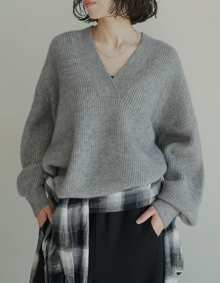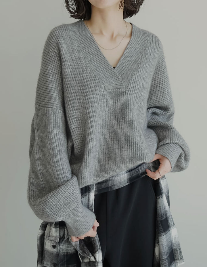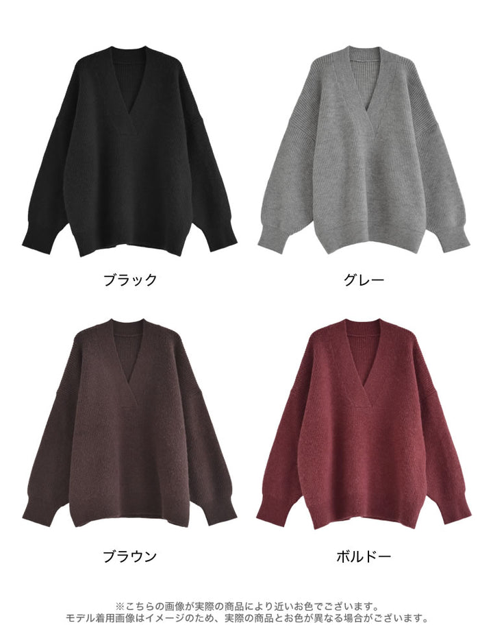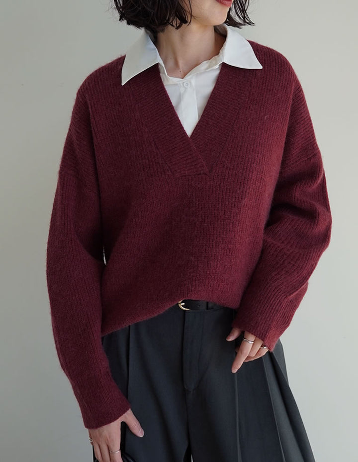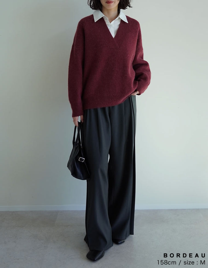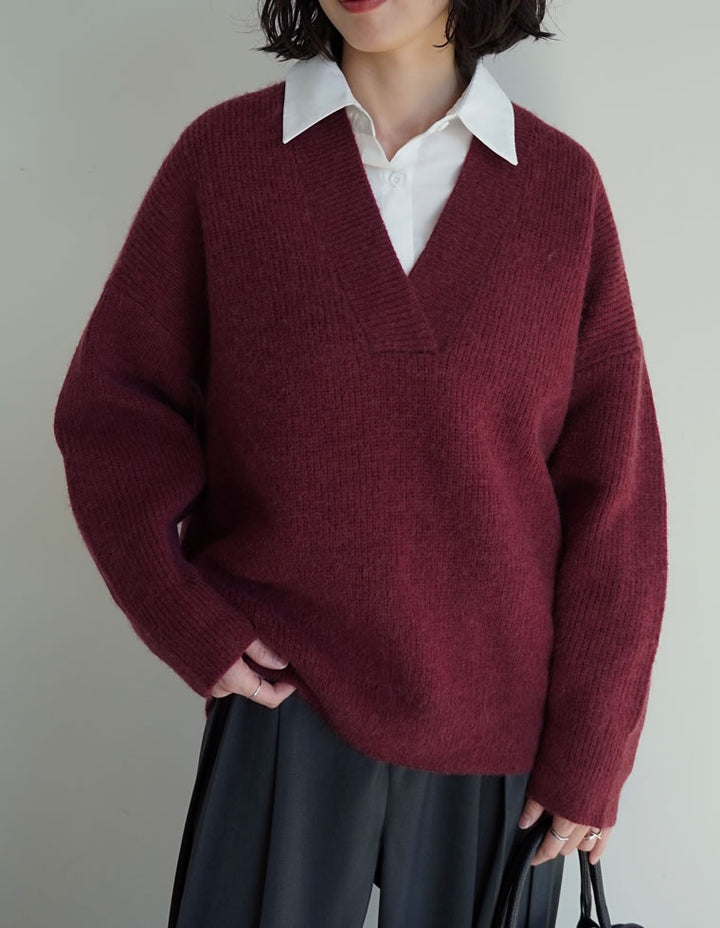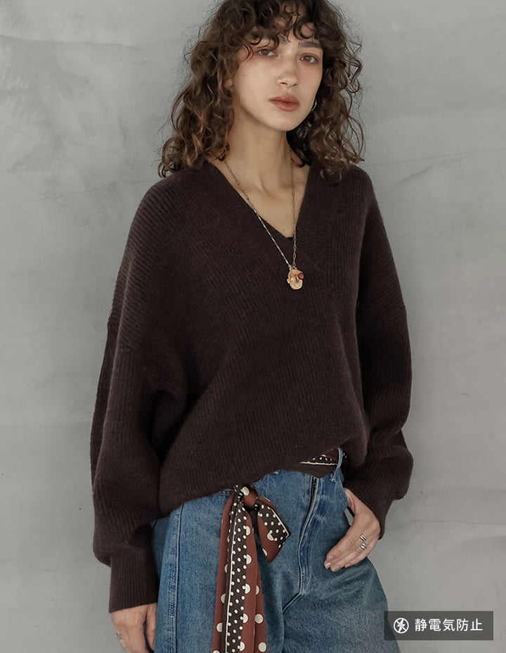 [2025AW COLLECTION][静電気防止]片畔編み深Vネックニットプルオーバー
