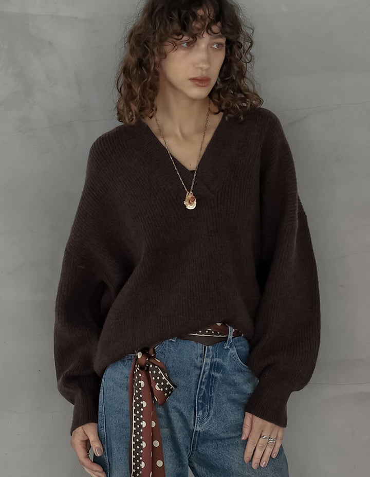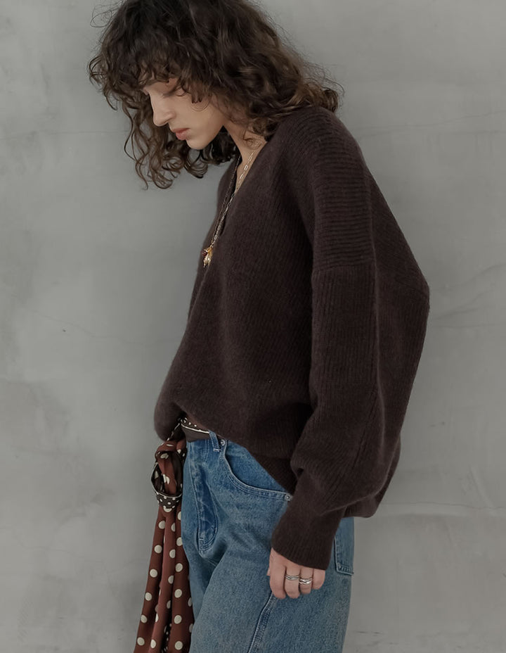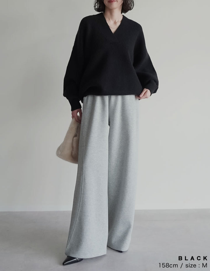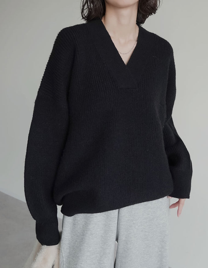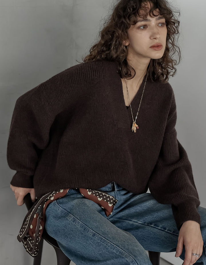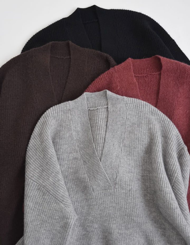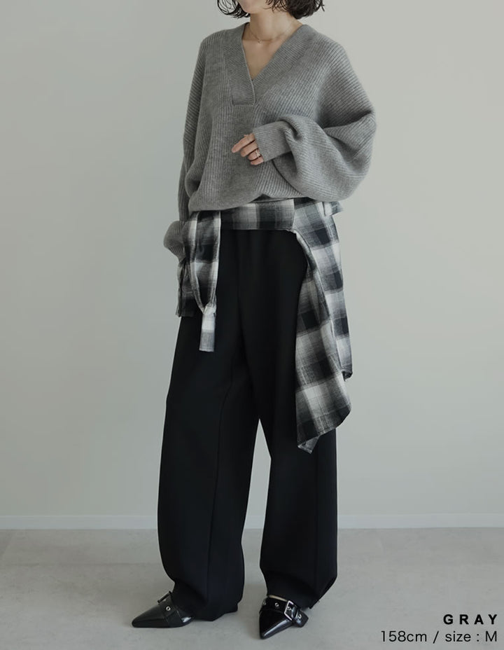 [2025AW COLLECTION][静電気防止]片畔編み深Vネックニットプルオーバー