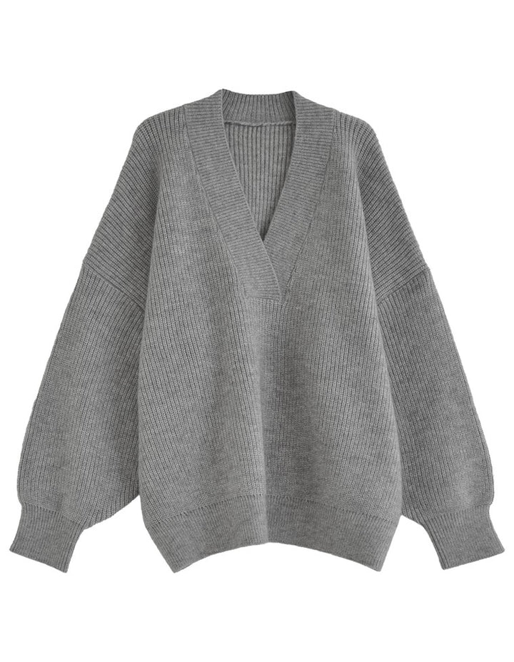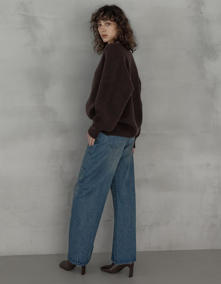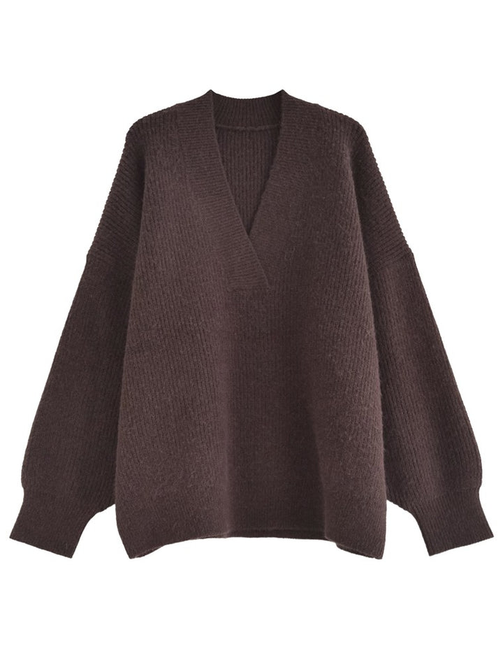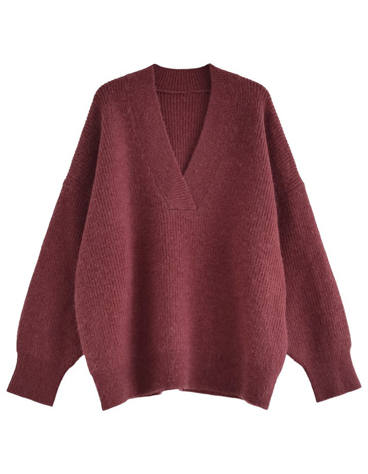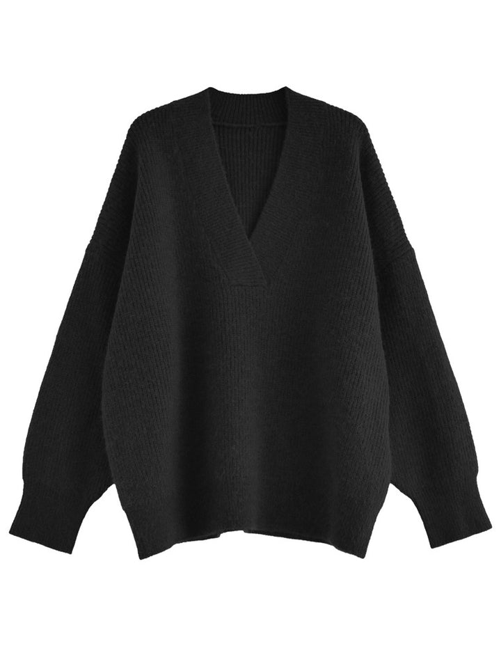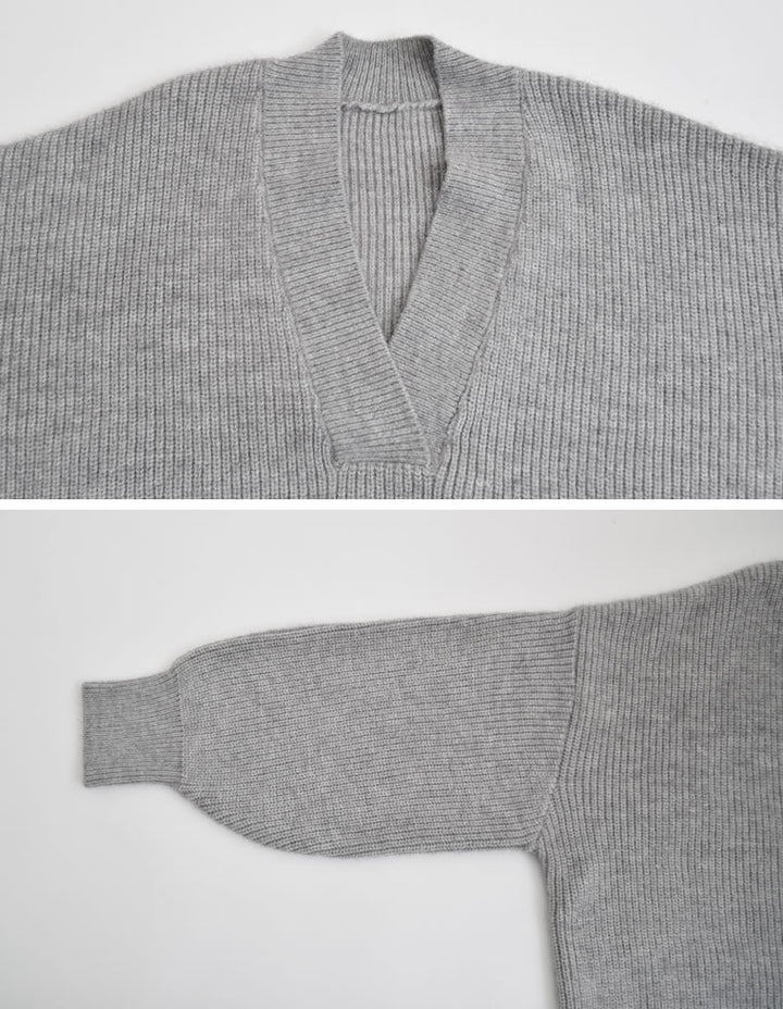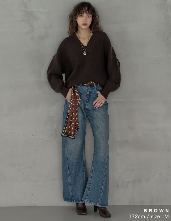 [2025AW COLLECTION][静電気防止]片畔編み深Vネックニットプルオーバー