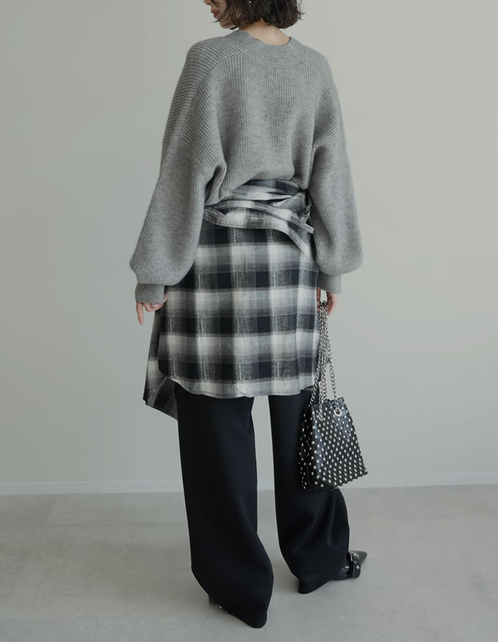 キャミソールをインして首元をすっきり見せたり、Tシャツやカットソーを重ねてカジュアルに着こなすのもおすすめ。ワイドパンツやデニム、リラックスパンツと好相性で、ウエストマークをプラスすれば今季らしいバランスに。寒い時期には、タートルネックやコンパクトニットをインナーに重ねたスタイルも◎