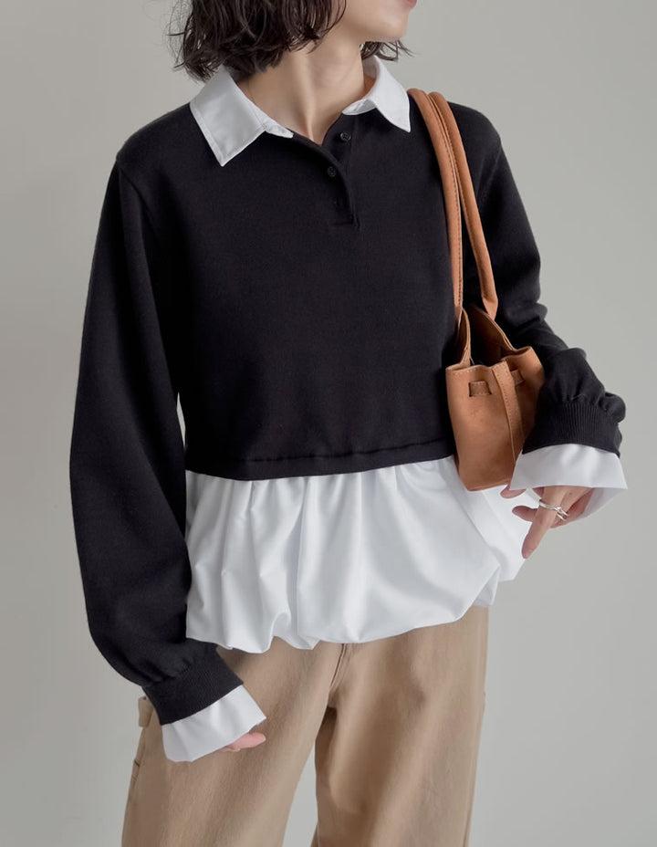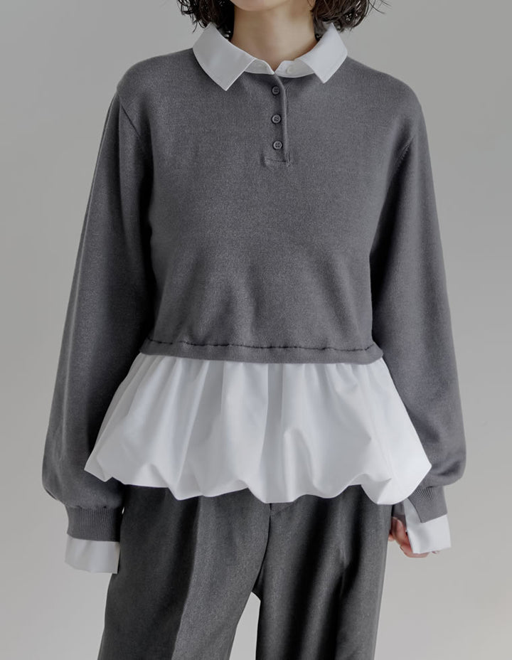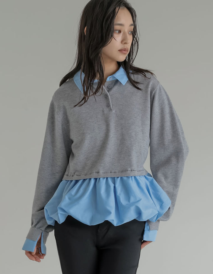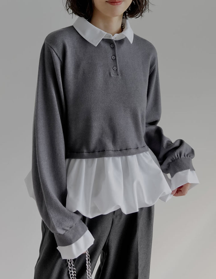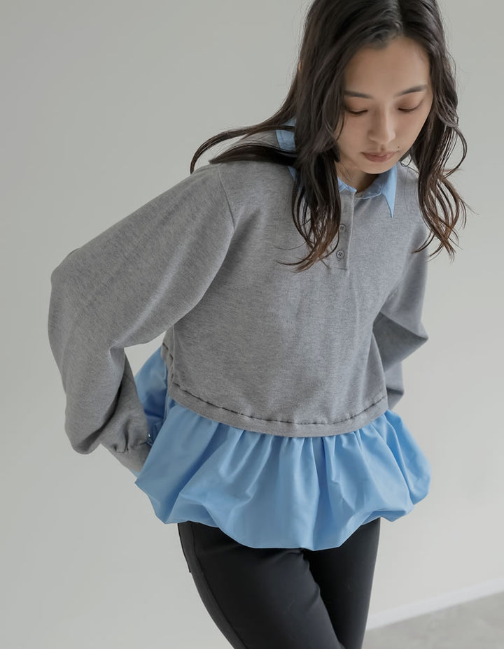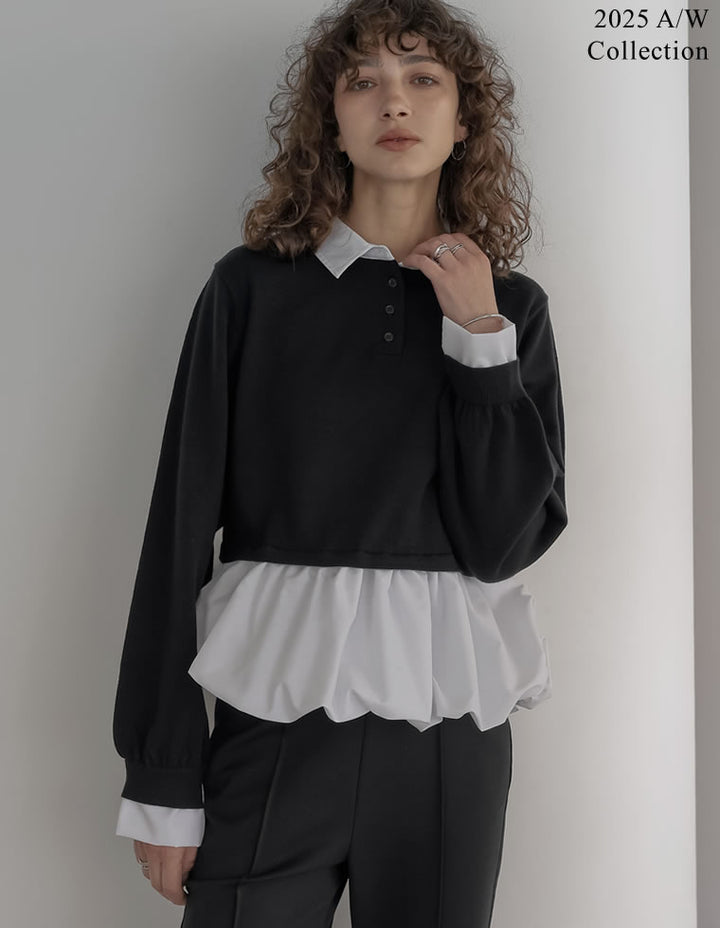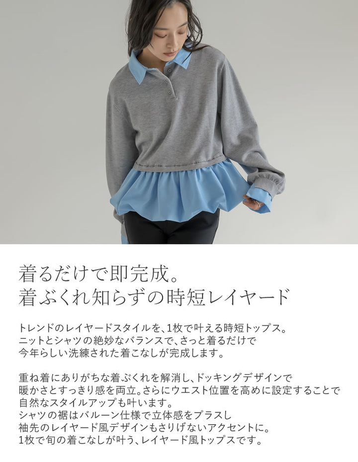 [2025AW COLLECTION]スウェットライクニット×バルーンシャツレイヤード風トップス