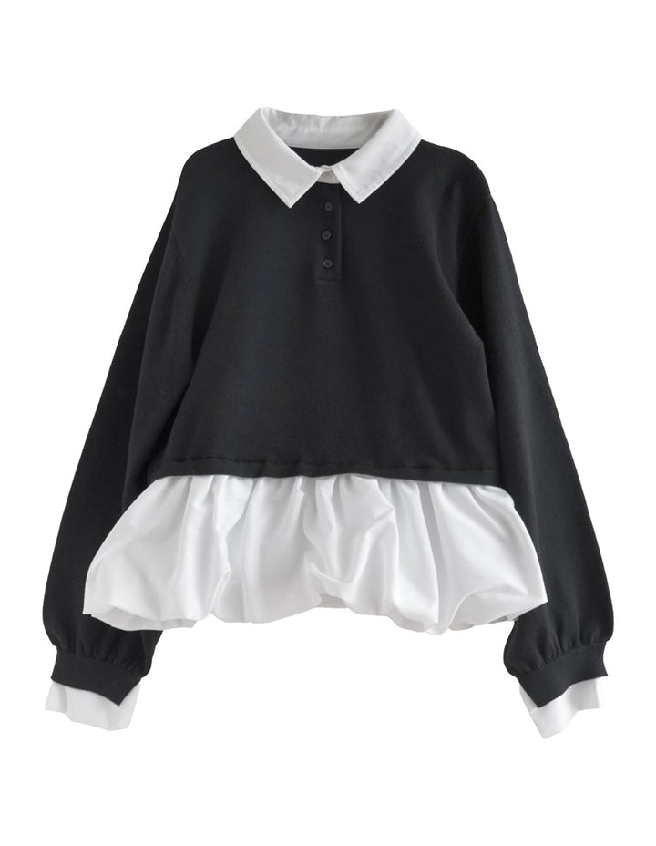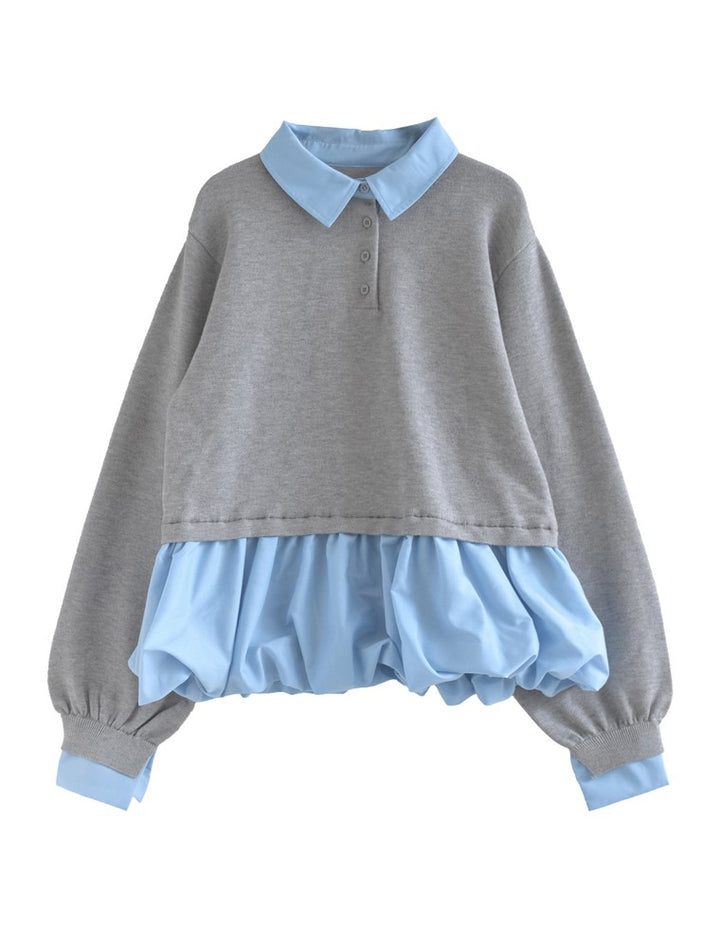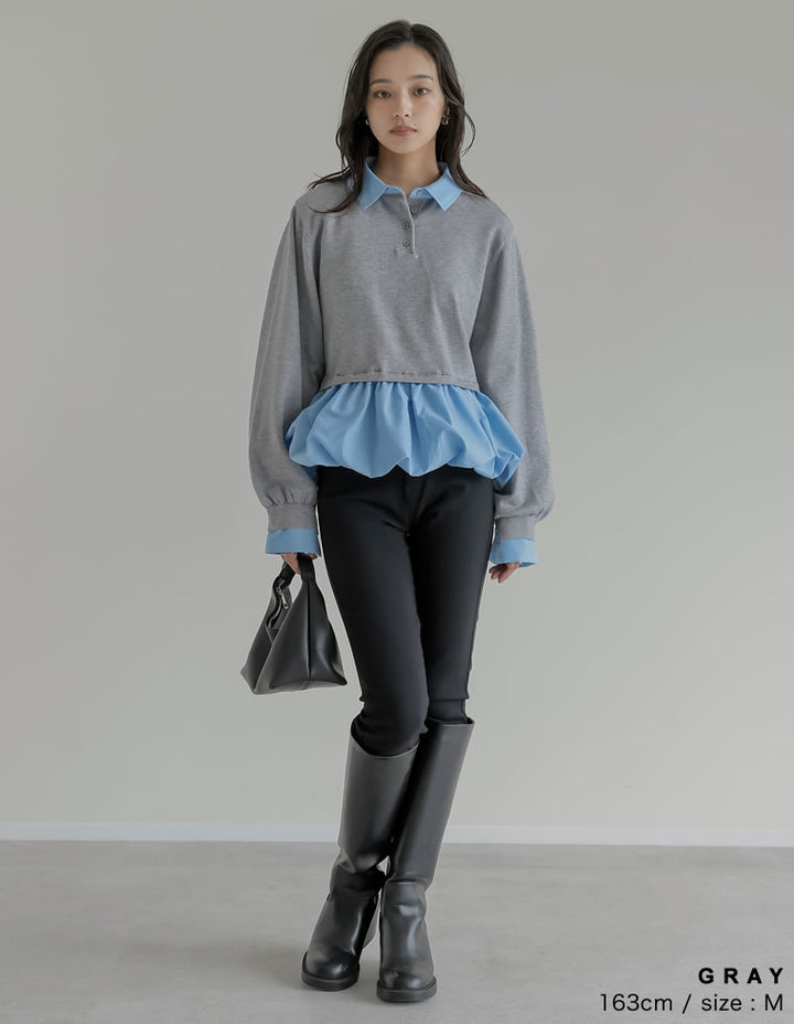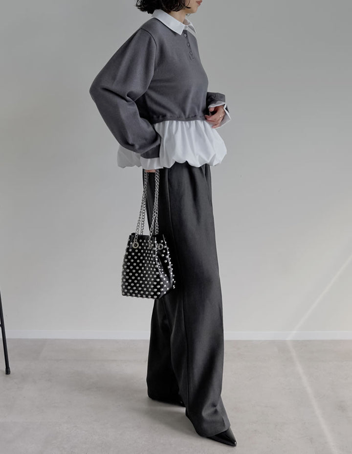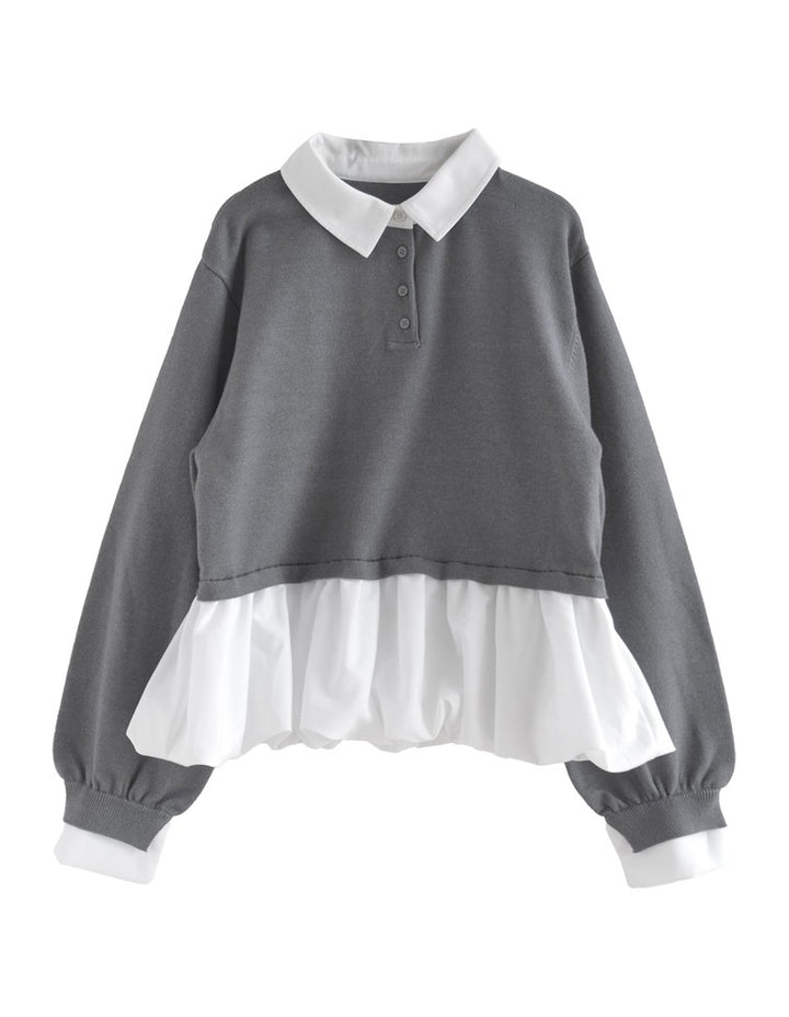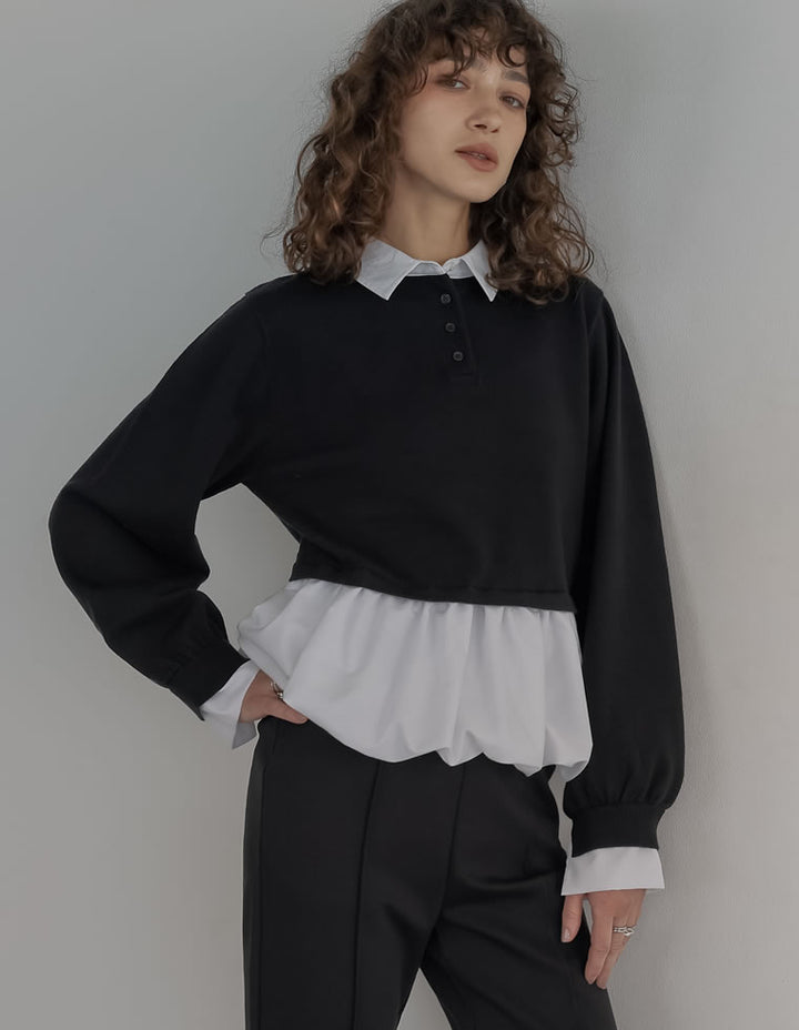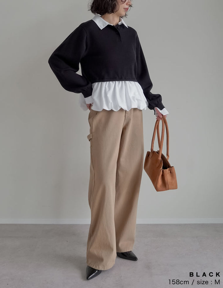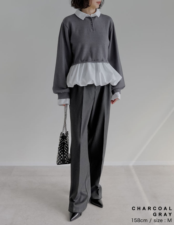[2025AW COLLECTION]スウェットライクニット×バルーンシャツレイヤード風トップス