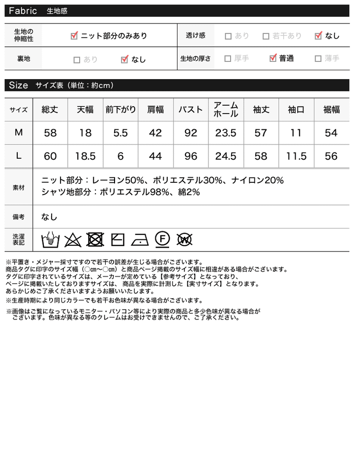 ※シルエットをくずさないために、保管の際はハンガーを使用せず、たたみ保管にして下さい。