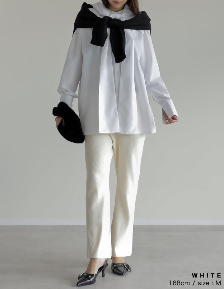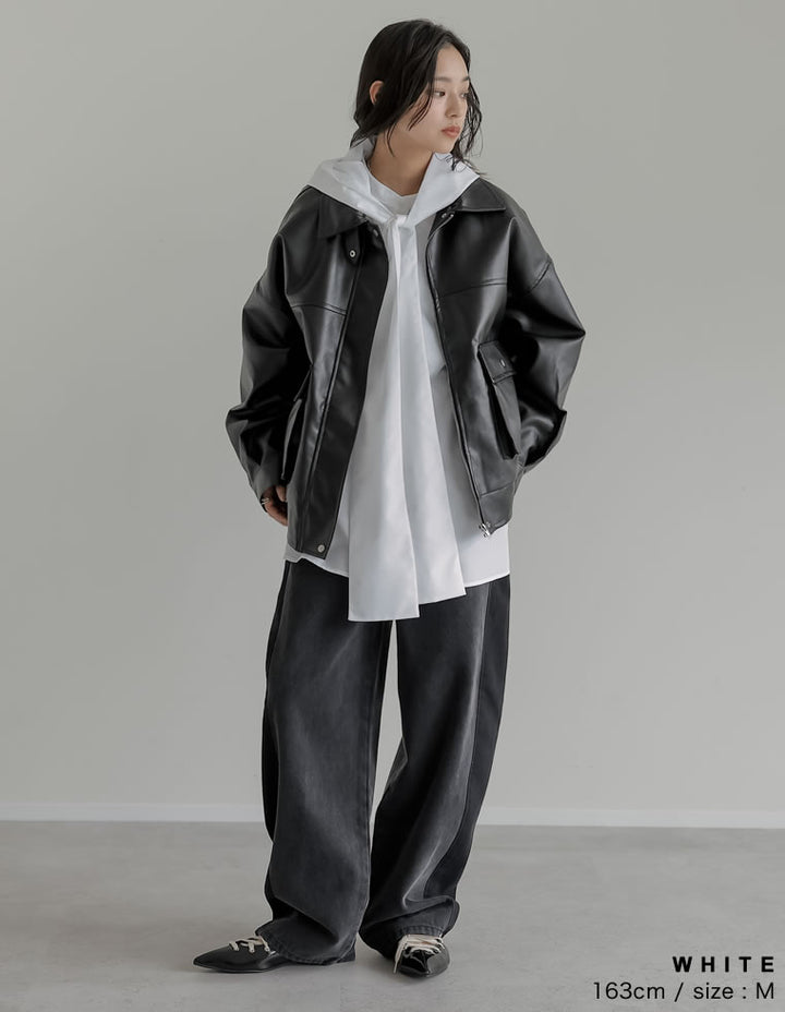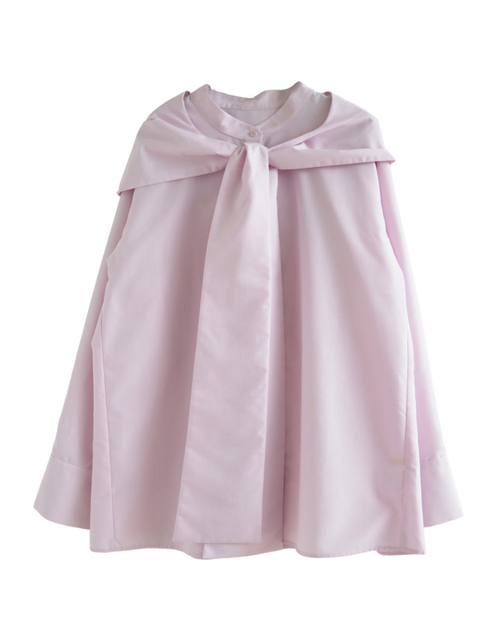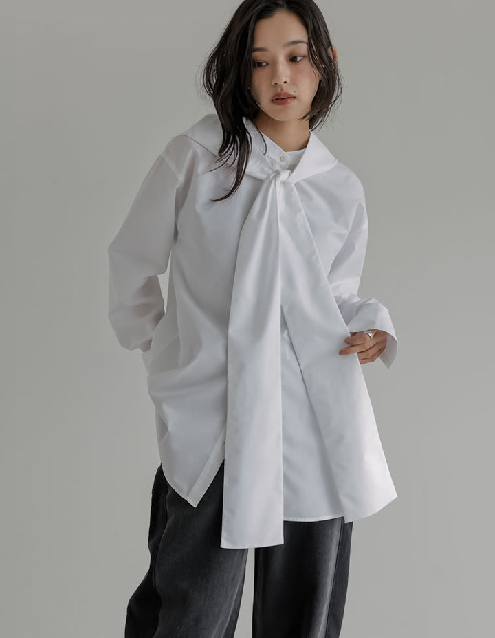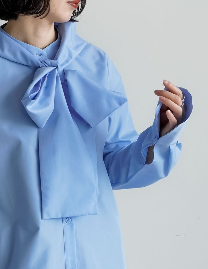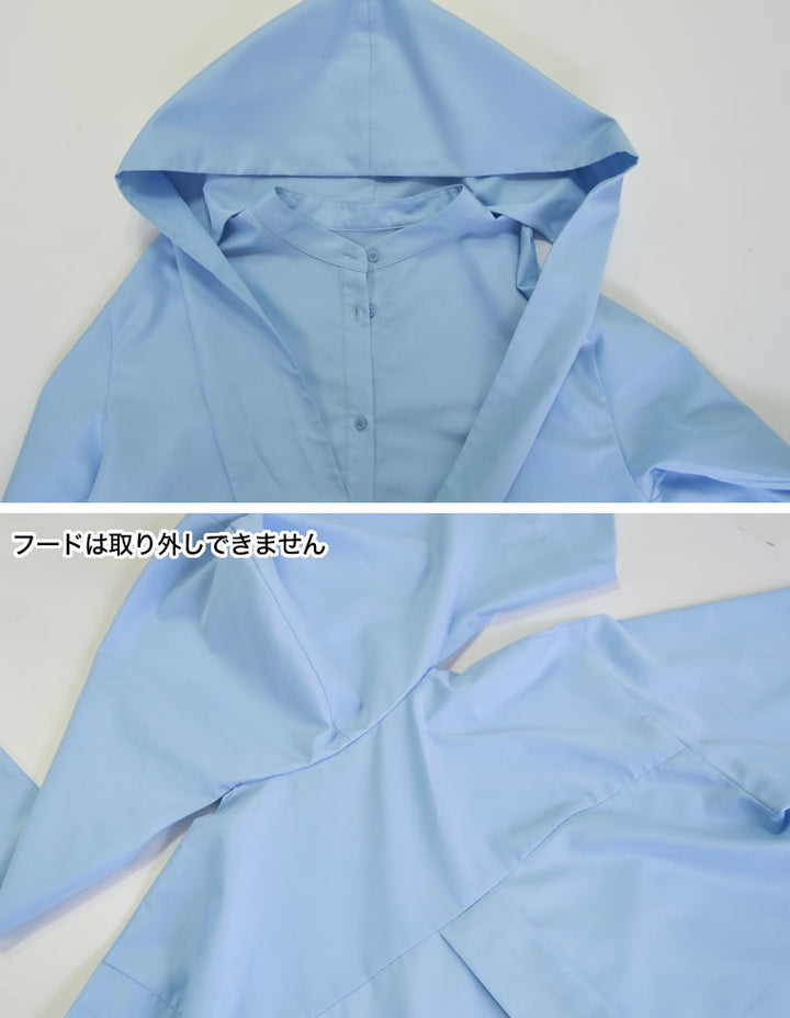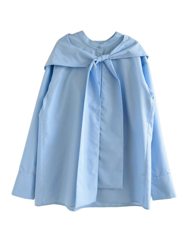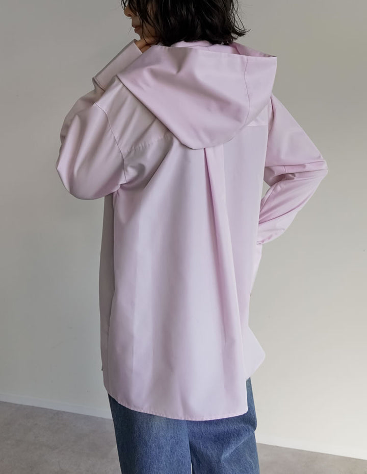 同素材のスカーフを首元に巻いたようなデザインが新鮮なオーバーサイズシャツ。さらりと軽やかなブロード生地で仕立てているので、ロングシーズン活躍します。リラクシーなオーバーサイズシルエットは、きれいめにもカジュアルにも振れる万能さが魅力。後ろはフード仕様になっており、ジャケットやニットからフードを覗かせれば、今年らしいレイヤードスタイルに。