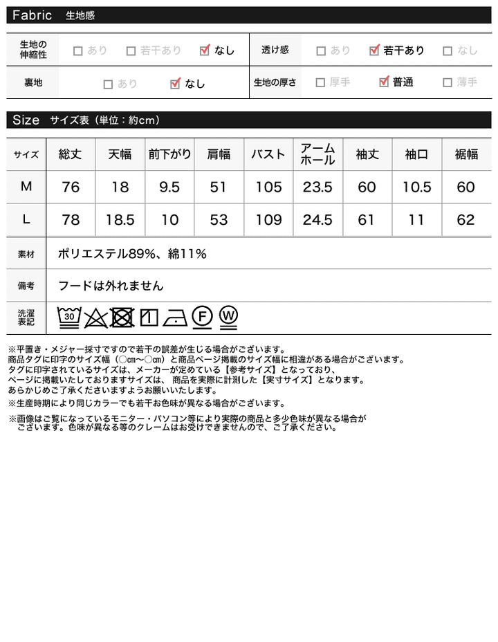 洗濯・アイロンをする際は、商品タグの品質表示をご確認ください。